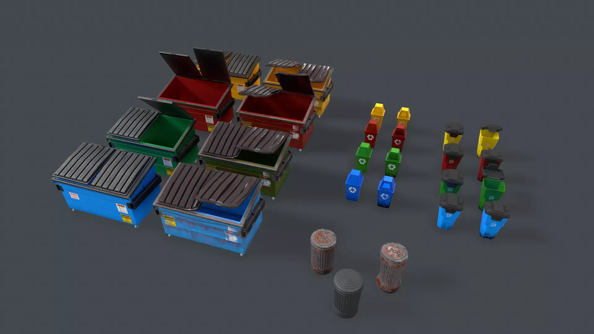hi Guys just uploaded gameready dumpster pack with multiple PBR texture variation