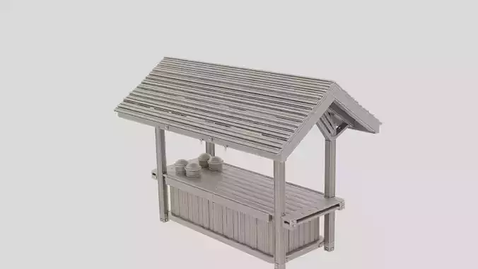 This fantasy wooden market stall is designed as a versatile environment prop for towns, villages, and traveling merchant scenes in tabletop gaming. The model depicts a simple but sturdy wooden stall with a roof frame, support beams, and counter surface, all sculpted as a single solid static object. Wood grain, knots, and wear are integrated directly into the geometry to ensure realism without textures. The model is delivered without texture and is fully ready for 3D print, allowing hobbyists to paint it to match any setting. The thick structural elements prevent breakage and make the model suitable for repeated handling. This stall can represent food vendors, traders, or quest locations and fits naturally into both common and unusual fantasy scenarios.