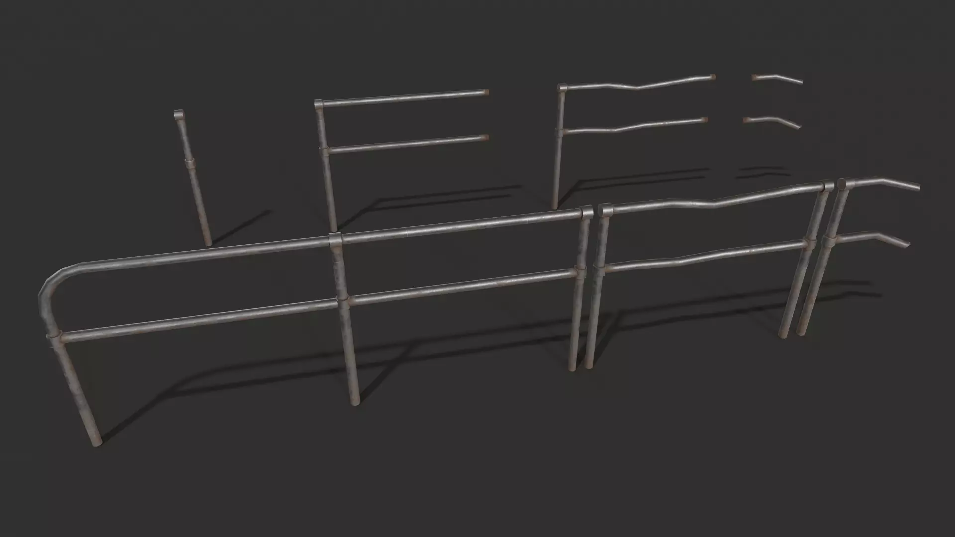 Fence Metal set Game-Ready Low-poly 3D model