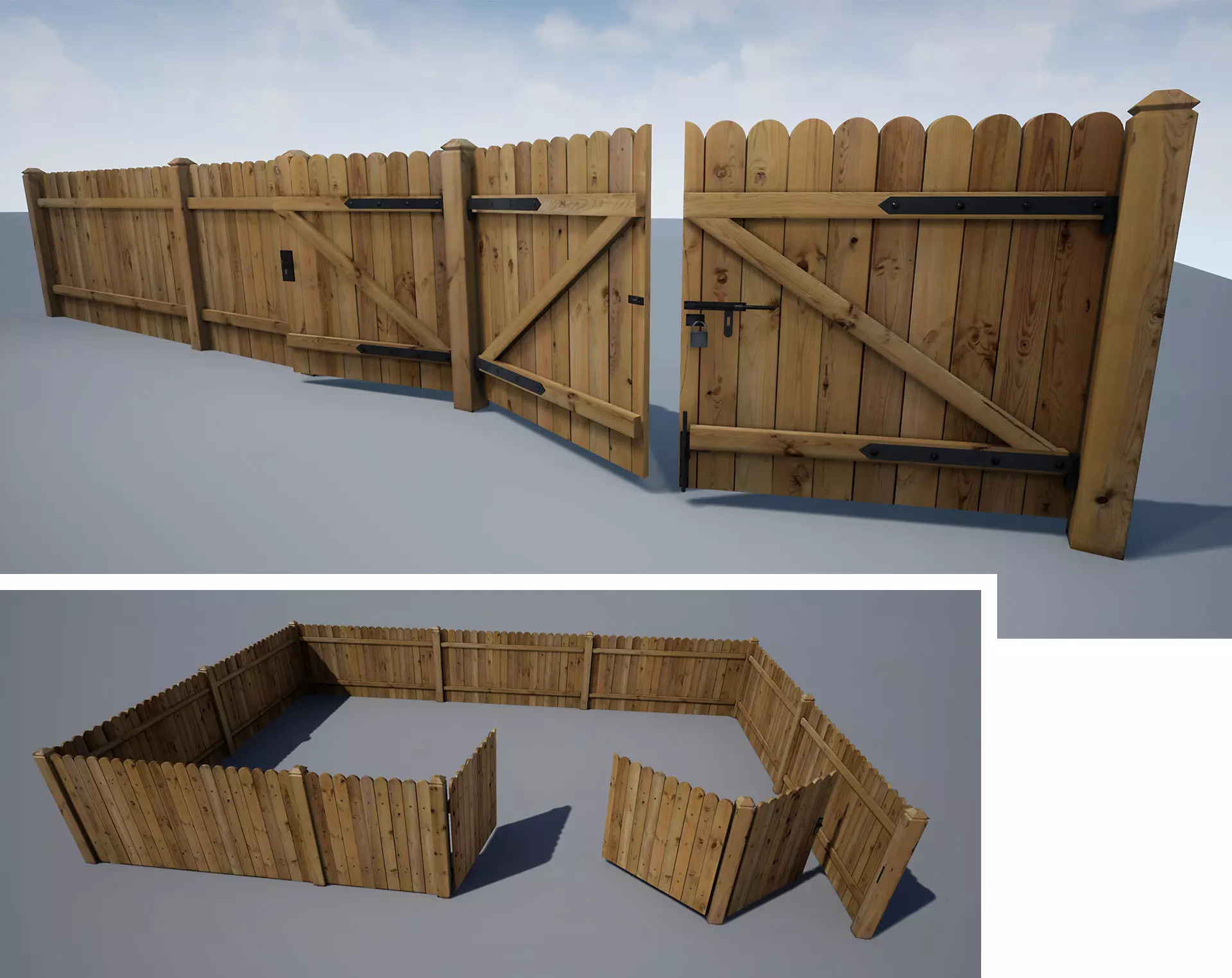 The main fence textures have a resolution of 8192x8192 pixels. The following texture types are included: Base Color (Albedo), Ambient Occlusion, Metallic, Roughness and Normal Map. Each 3D model has two LOD (Levels Of Detail) versions: Mid-poly and Low-poly (manually simplified). So you can choose the best version for your project.