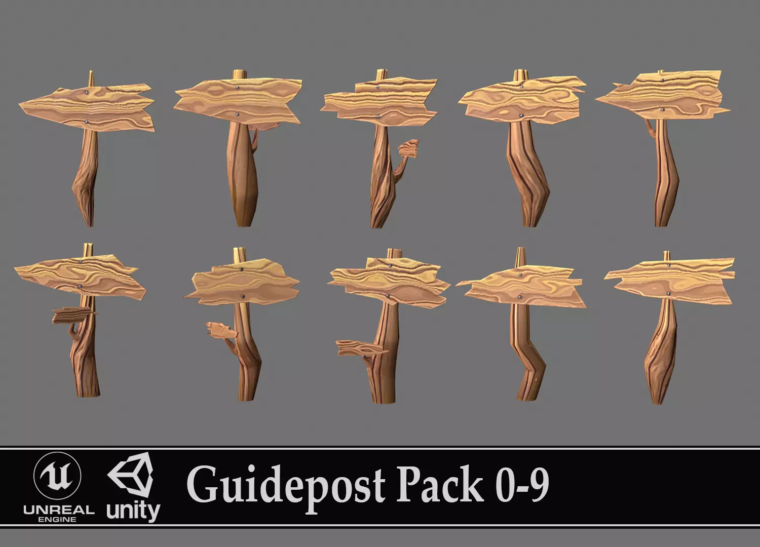 Guidepost Pack 0-9 Low-poly 3D model