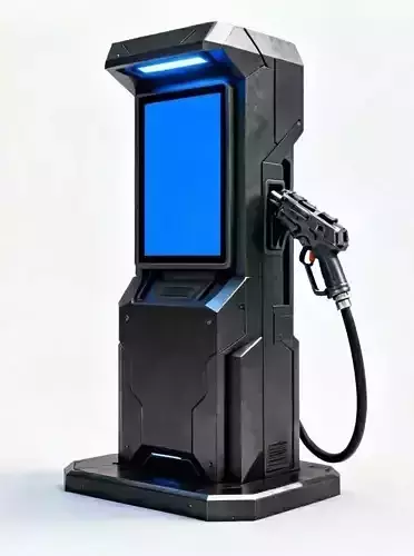 The Overall Concept This asset is a high-tech fueling pump for the future. It is designed to look like a hydrogen or electric charging point for sci-fi cities, replacing old gas pumps with clean energy technology.