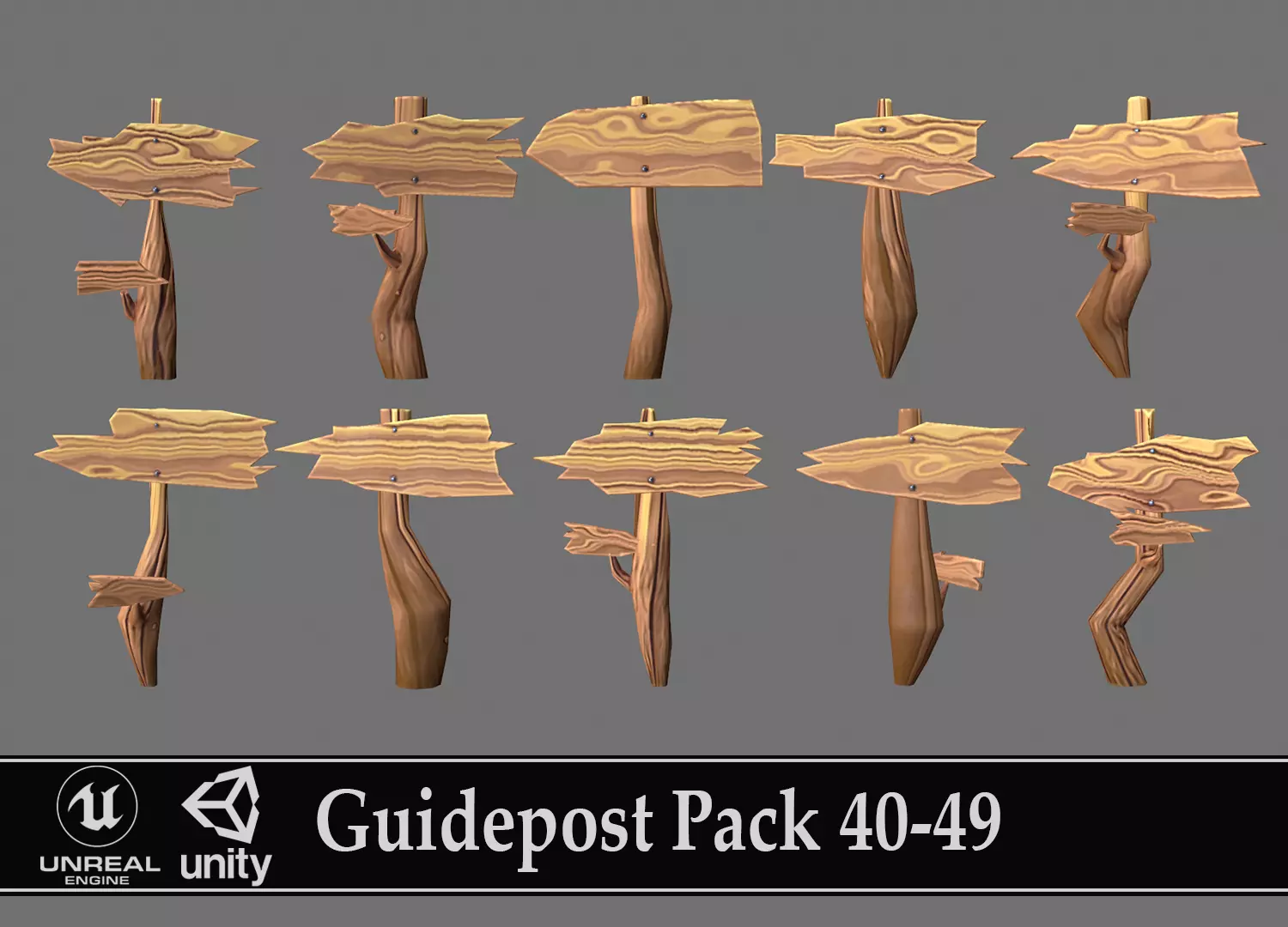 Guidepost Pack 40-49 Low-poly 3D model