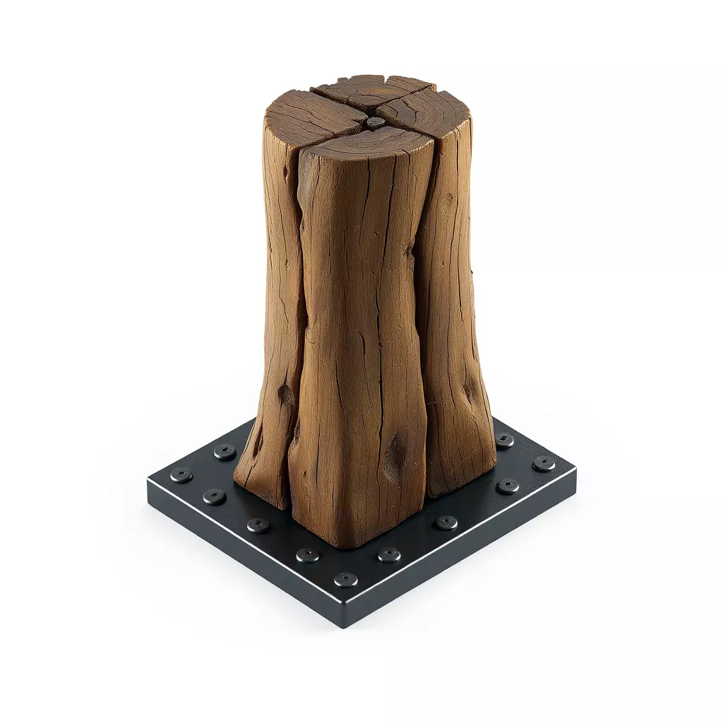 This high-quality 3D model presents a rustic wooden log post, securely anchored to a robust industrial metal base. The model meticulously captures the authentic character of aged timber, featuring deep, natural cracks, pronounced grain, and a rich, weathered brown texture that evokes a sense of history and durability. A central metal element on the top surface further enhances its realistic, sturdy appearance. This versatile asset is ideal for a wide range of creative projects, including immersive game development, where it can serve as an environment prop in rustic, abandoned, or industrial settings, or as a distinctive bollard. It is also perfectly suited for architectural visualizations, adding authentic detail to landscape designs, urban planning, or exterior scenes. The model's optimized geometry and clean topology ensure smooth performance in real-time applications like AR/VR and game engines, while its high level of detail makes it perfect for high-resolution static renderings and digital art compositions. It comes fully UV unwrapped with professionally crafted PBR textures, ensuring photorealistic materials under any lighting condition. Supported formats likely include GLB, OBJ, STL, ABC, DAE, FBX, USD, and PLY, offering broad compatibility. Whether for close-up renders or distant scene elements, this industrial log post delivers exceptional visual fidelity and flexibility.