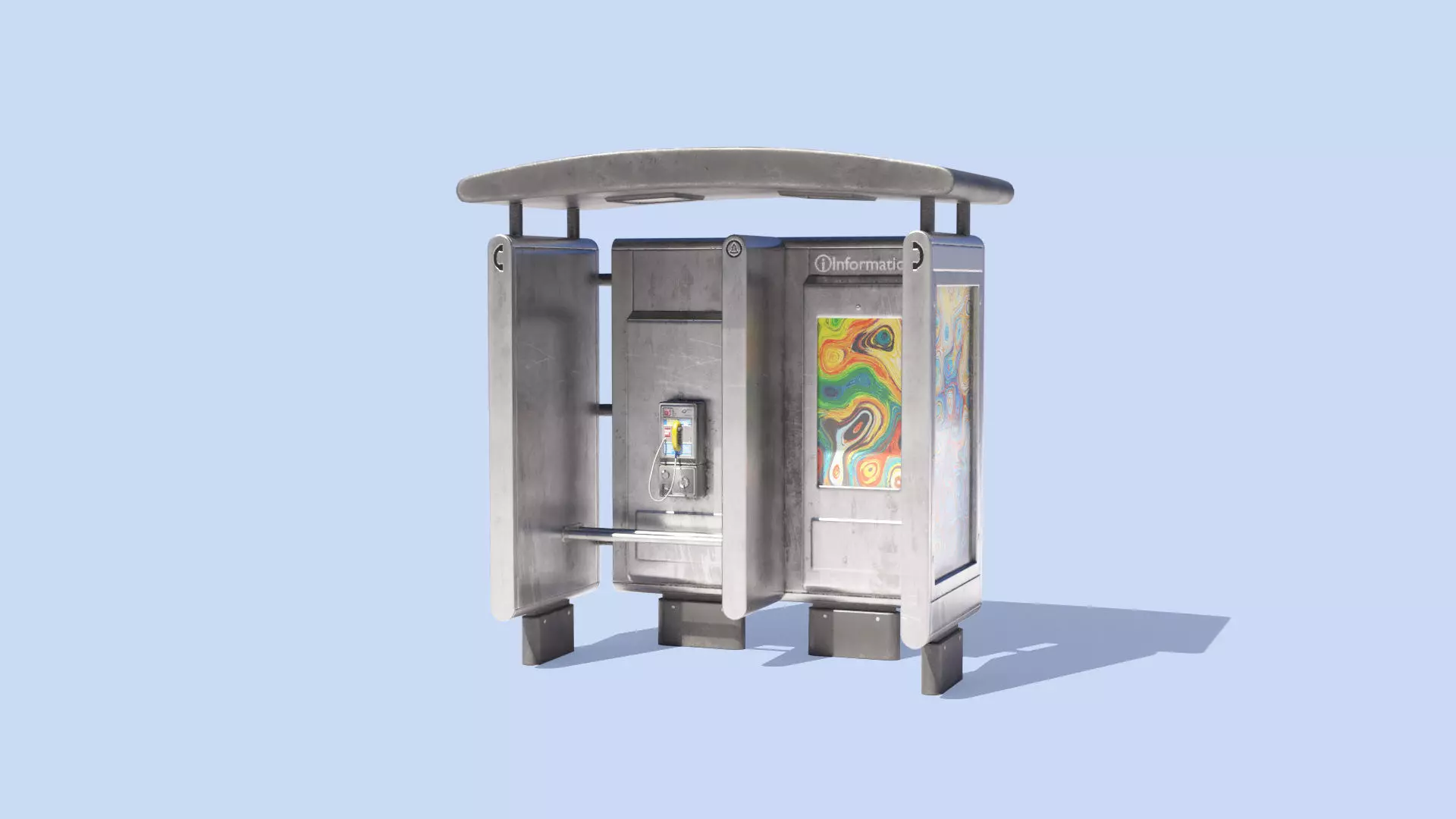High-quality low-poly PBR 3D model of Info Kiosk with Phone.