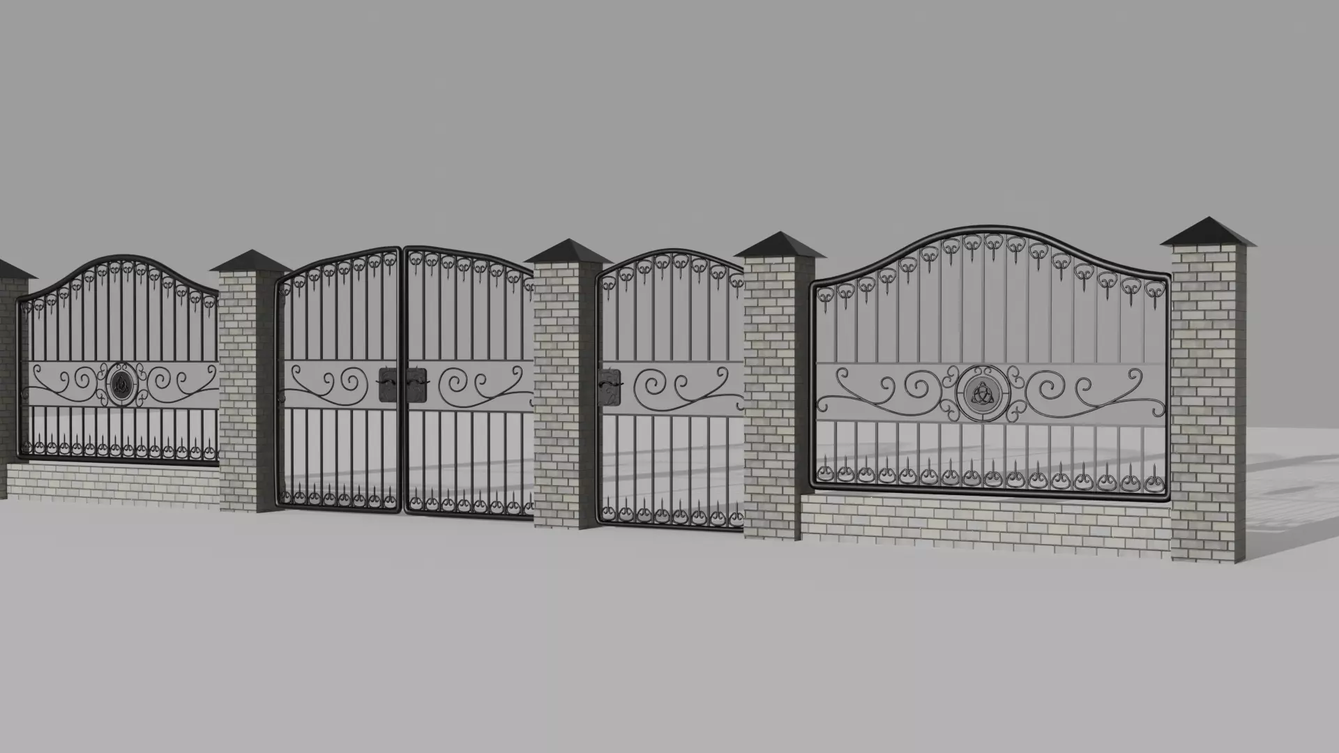 This highly detailed wrought iron gate model is perfect for architectural visualization, animations, and high-quality renders. With 83,820 polygons, it offers an excellent balance between detail and performance. The intricate design features elegant scrollwork and a central emblem, making it suitable for a wide range of scenes, from historical to modern.