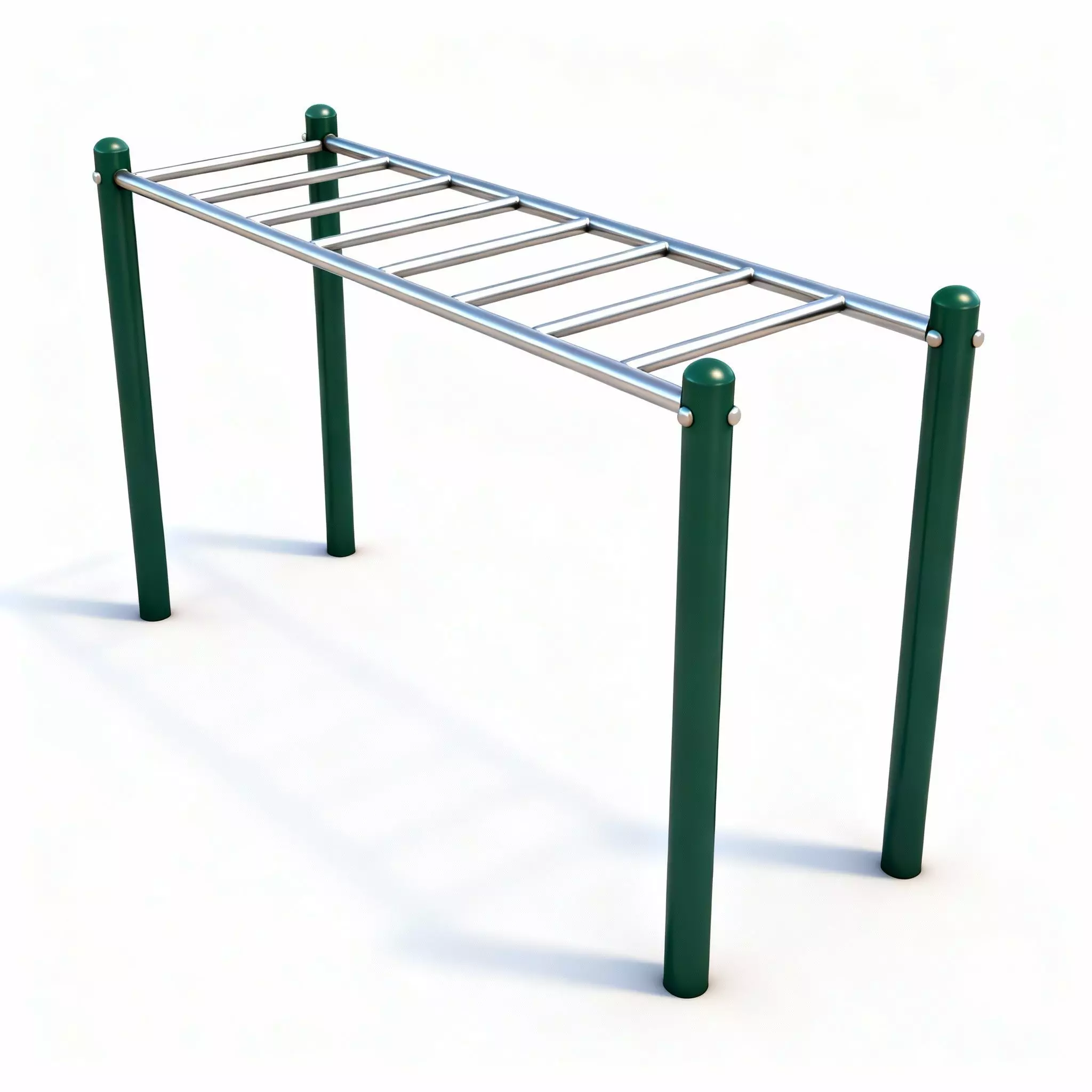 Safety Caps The tops of the vertical posts are fitted with rounded metallic caps. This small detail adds realism, covering sharp edges and making the equipment look manufactured and safe for public use.