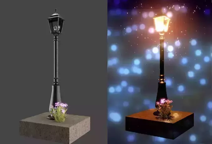 This is a 3D representation of a lamppost/stree light. Post-processing in Cycles and a few additional elements (pavement, grass, and flowers) have been added to complement the scene.The lamppost has PBR materials. The texture has been painted by the artist. The normal and specualiry maps have been generated based on the painted image texture. One or more textures (pavement texture) bundled with this project have been created with images from Textures.com. These images may not be redistributed by default. Please visit www.textures.com for more information.No plugins have been used to render the scene. The lamppost will be rendered like on thumbnails with appropriate lighting setup.The textures are not baked and can easily be changed. All materials and shaders in the scene are named properly to make navigation smooth and practical.The model is at the centre of the scene and can be rescaled.The model has clean topology. All converted formats have been tested before upload.The 3D model can be used as a digital asset and also be printed using a 3D printer (STL file).The 3D model is for free. Thank you!
