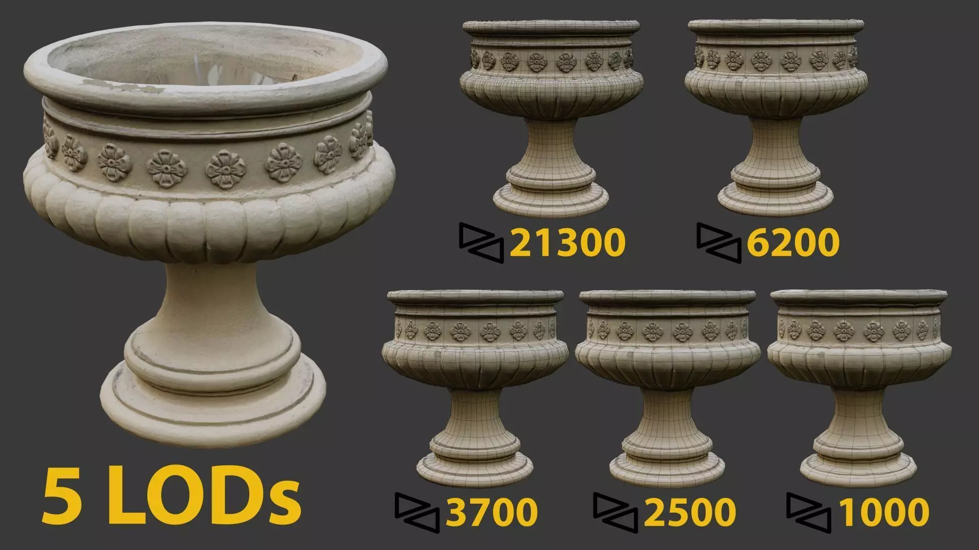 / 11123 verticesThe number of points (corners) that define the shape of the model's polygons.