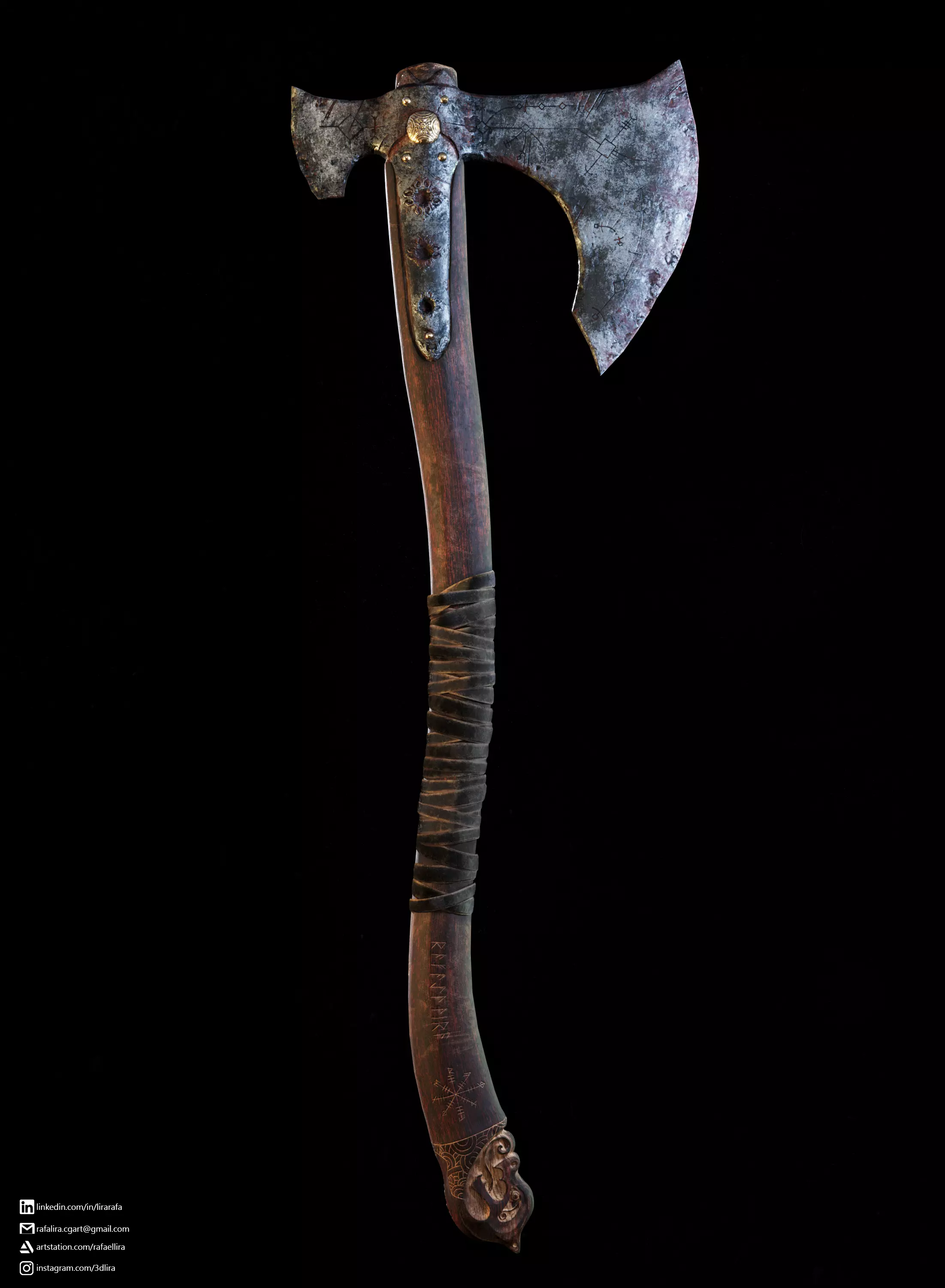 I created a custom version of the Leviathan Axe , incorporating my own unique concept of the weapon. Using a combination of 3ds Max and ZBrush, I modeled the axe and then used TopoGun for the retopology process. PBR texturing was completed in Substance Painter, and the final rendering was done using Marmoset Toolbag.