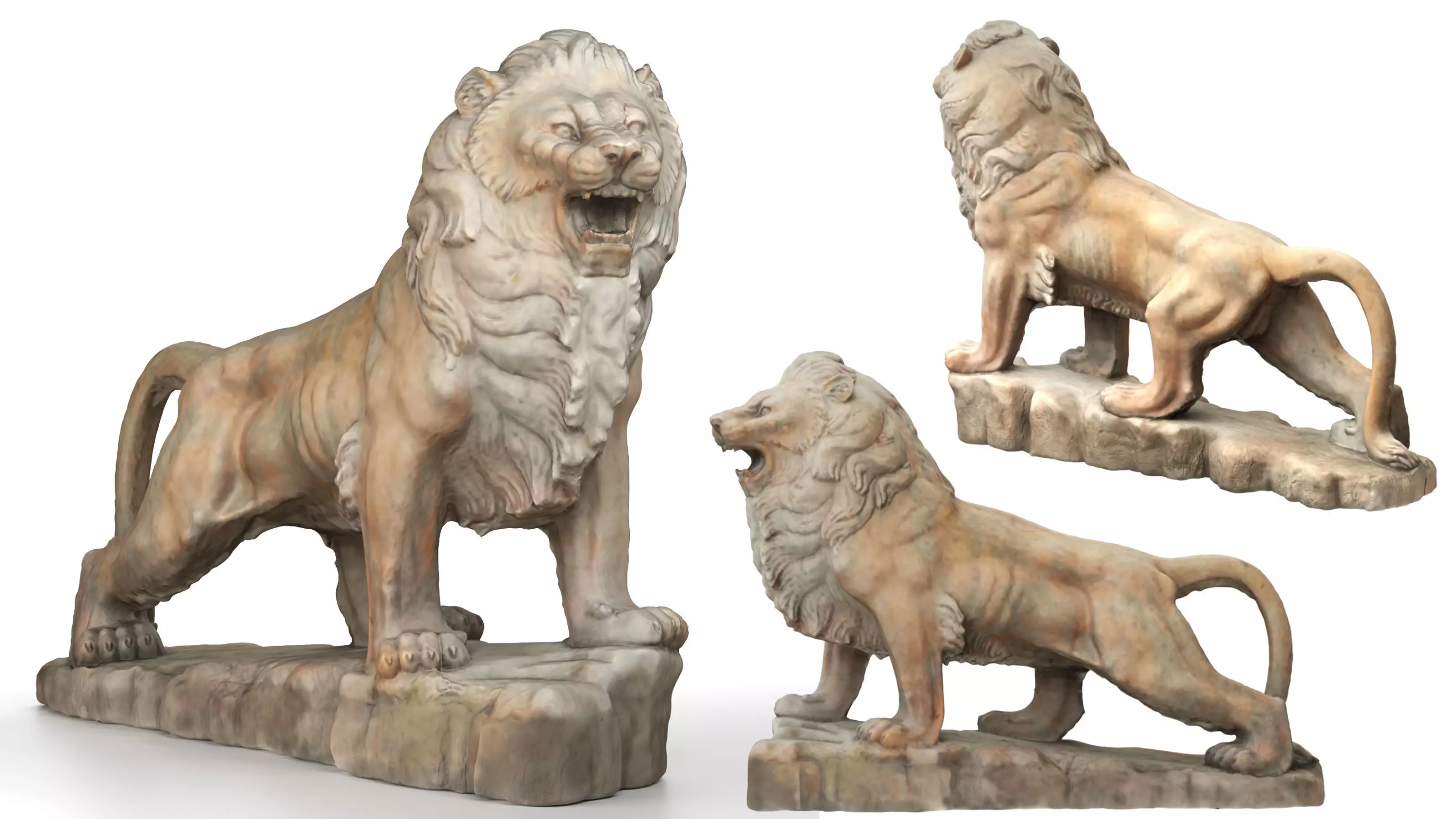 Model of a growling lion statue.The model is unwrapped and has 2k jpeg Diffuse, Normal and Glossiness maps.The model made in real-world size about 1.6 m high
