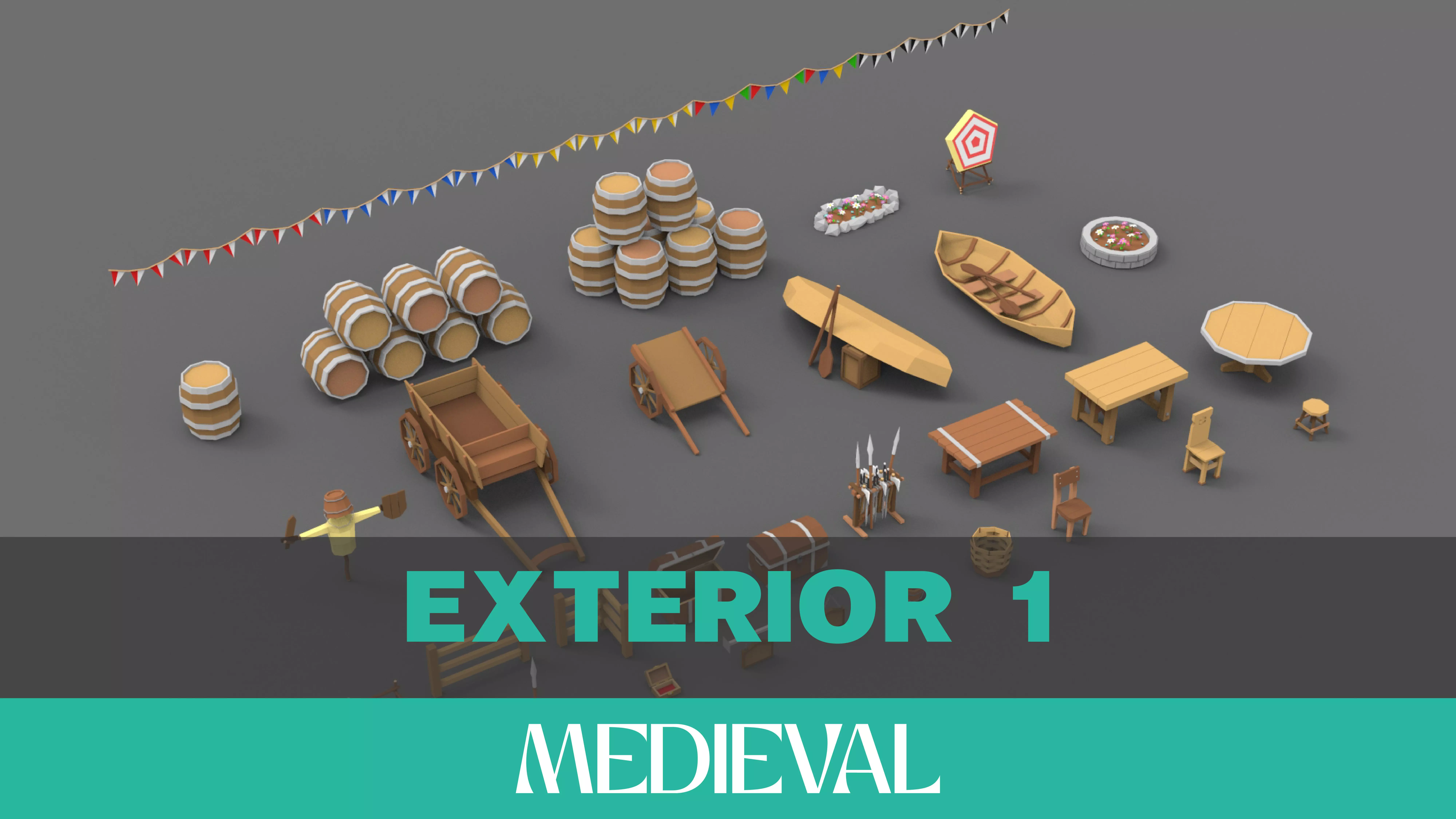 Low Poly Medieval Exterior Pack Collection Low-poly 3D model Low-poly 3D model