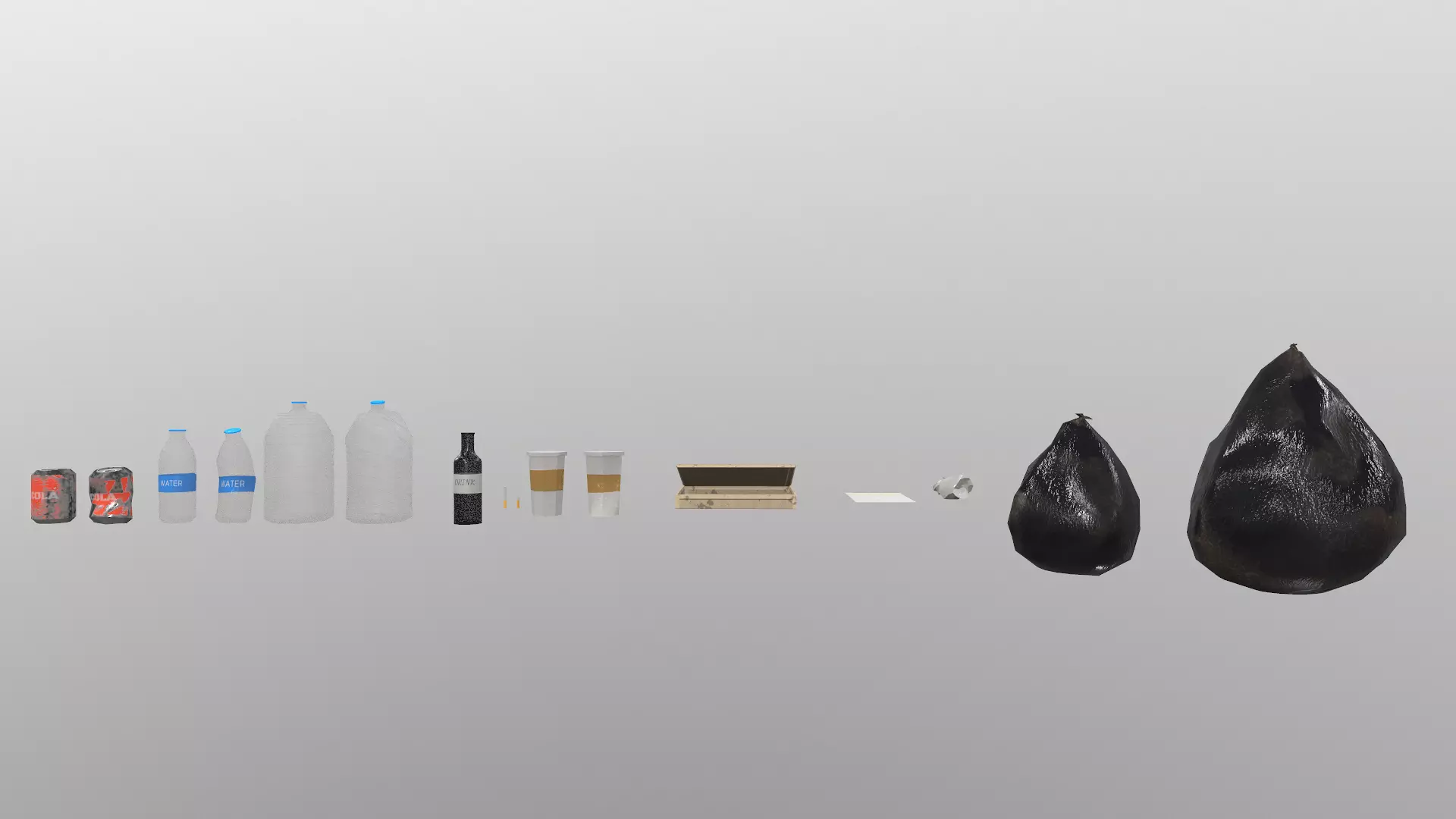 Low Poly Trashes bottles and cans Low-poly 3D model