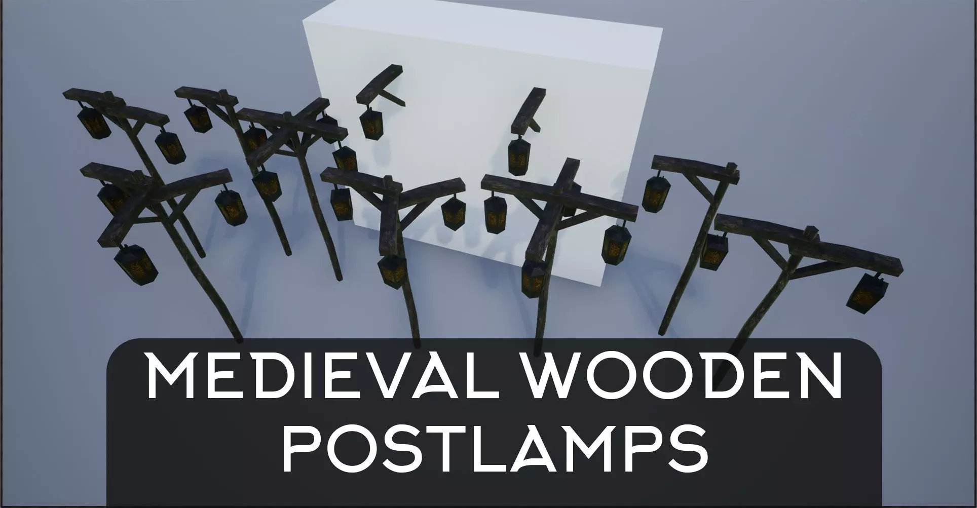 Lowpoly Medieval Wooden Postlamps Low-poly 3D model