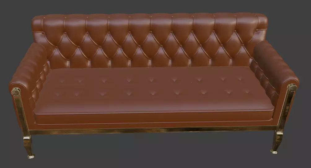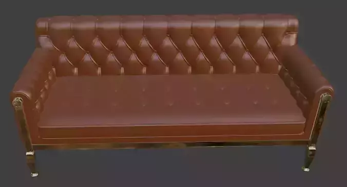 High-quality 3D model of a luxurious tufted leather sofa in rich brown color, featuring deep button tufting on the backrest and arms, rolled armrests, and elegant gold (brass) metal legs with decorative caps and base trim. This classic Chesterfield-inspired design combines premium leather upholstery with opulent metallic details, making it perfect for high-end interior visualizations, luxury living rooms, hotel lobbies, office receptions, classic mansions, or modern glamorous spaces.Ideal for architectural rendering, interior design projects, game assets, VR/AR environments, and furniture catalogs. The model is crafted with clean topology, optimized polygons, proper UV unwrapping, and full PBR materials for photorealistic results in any renderer.Key Features: