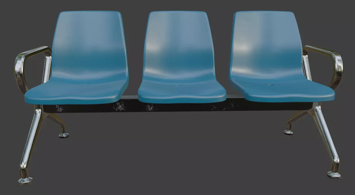 Clean and realistic modern 3-seat waiting bench 3D model with white plastic seats and polished chrome metal legs. Perfect for airports, hospitals, train stations, offices, lobbies, and public interior scenes. High-detail design, smooth surfaces, ready for close-up renders and real-time use. Great for archviz, games, VR, and animations. Compatible with Blender, 3ds Max, Maya, Cinema 4D, Unreal Engine, Unity, and more.