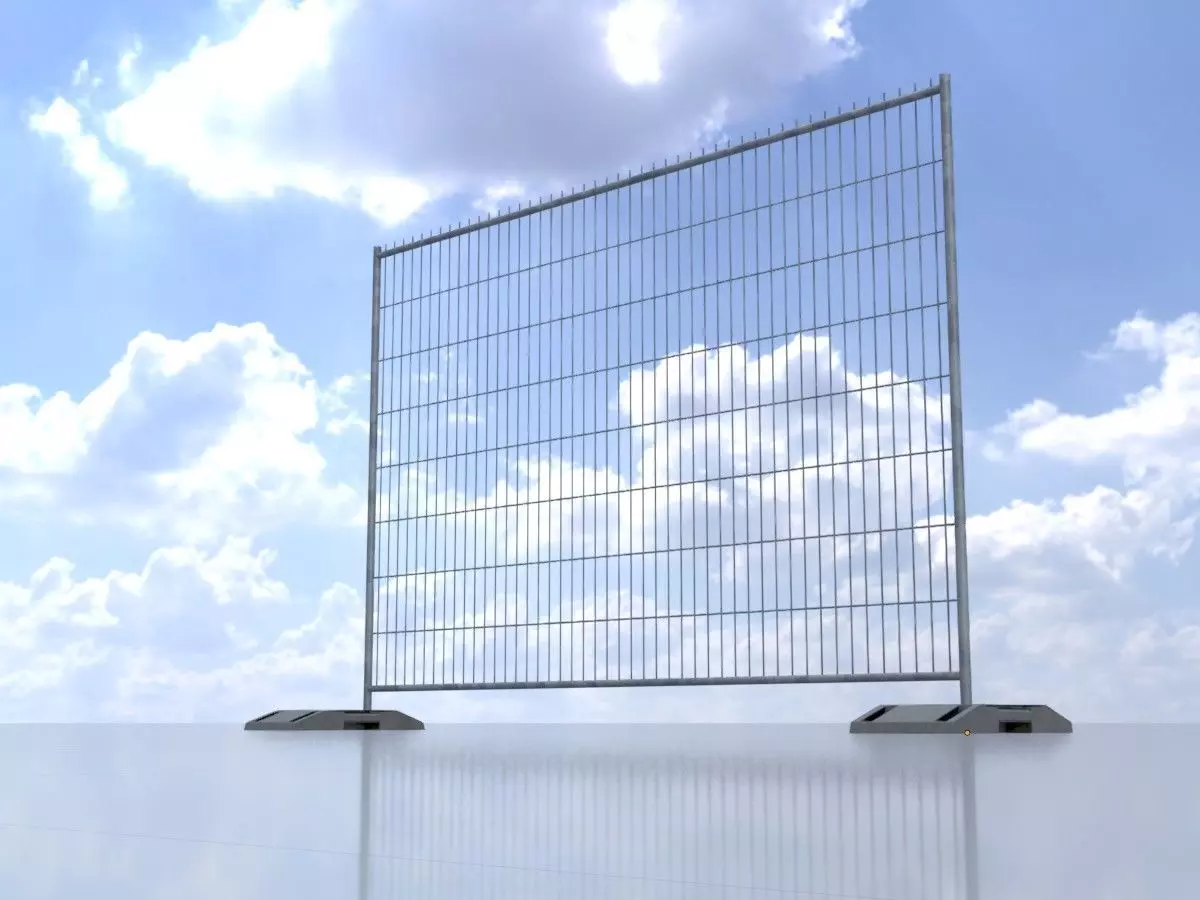 • This is a 3D model of a metal mesh fence with plastic bases from our construction site equipment collection.