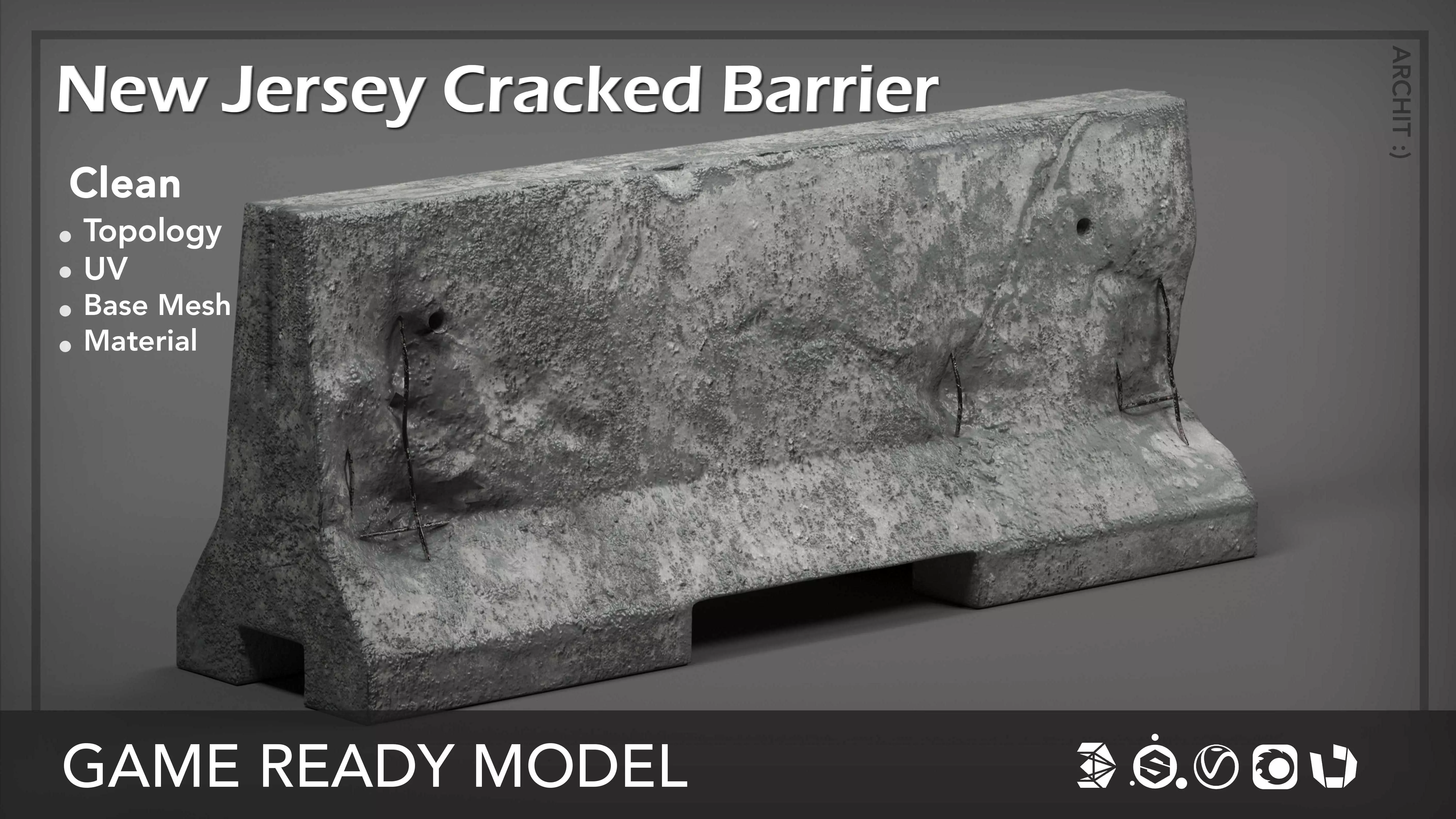 High quality and Game_Ready model of New Jersey Cracked Barrier as base mesh with 2K texture. designed by 3ds Max software and texturing in Substance Painter.