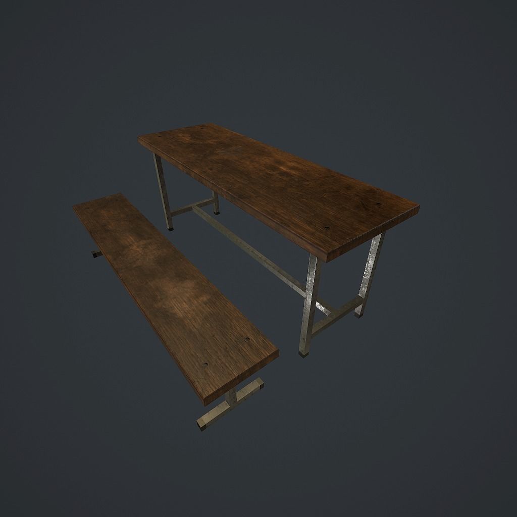 Old bench and table pbr Low-poly 3D model