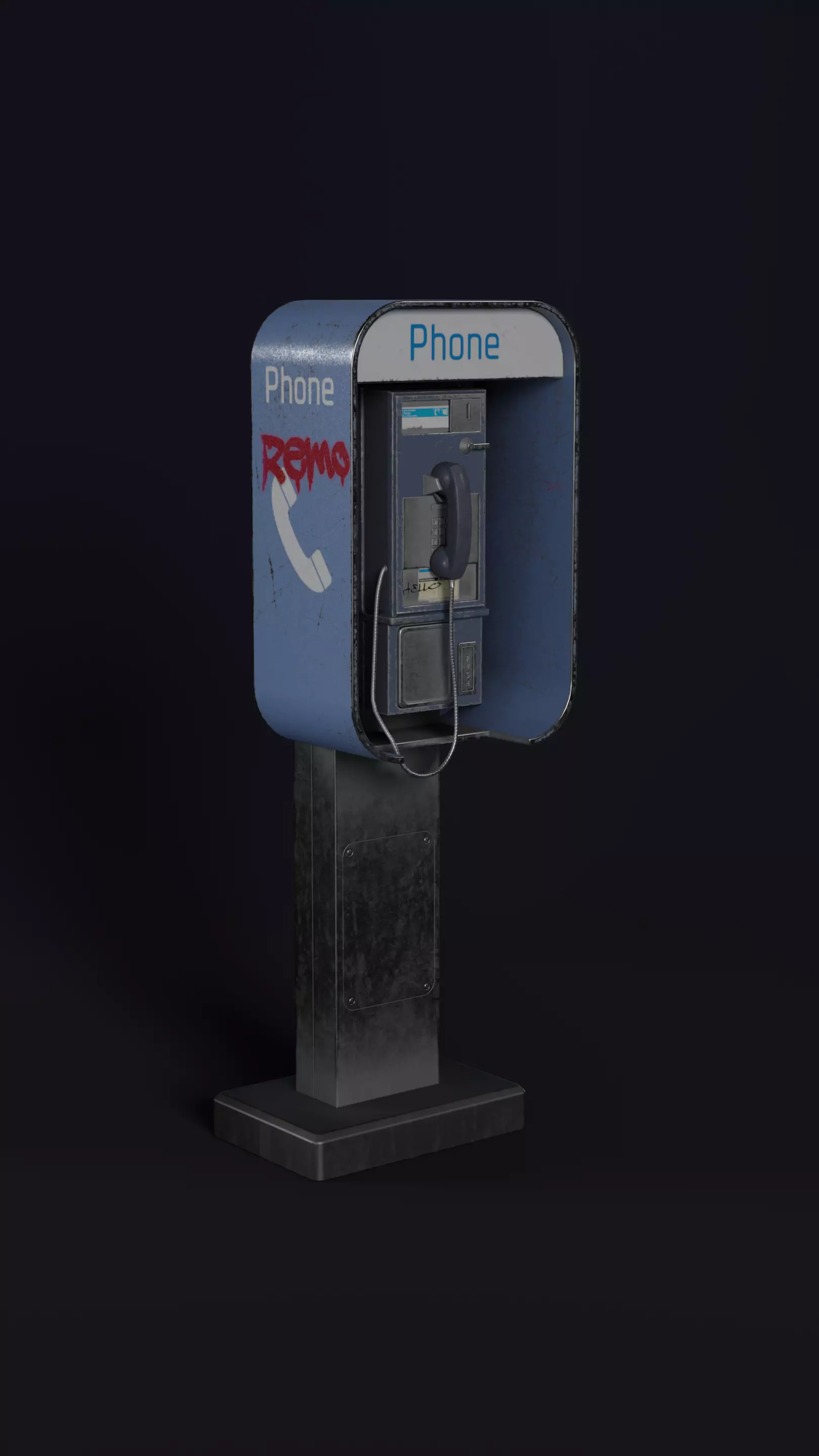 This is a model of an old payphone. The textures are PBR and in 4k resolution and work for Unity and Unreal Engine. The model is low poly and game ready. It has 8k tris. File formats: -blend -fbx -obj-abc (Alembic-dae (Collada)