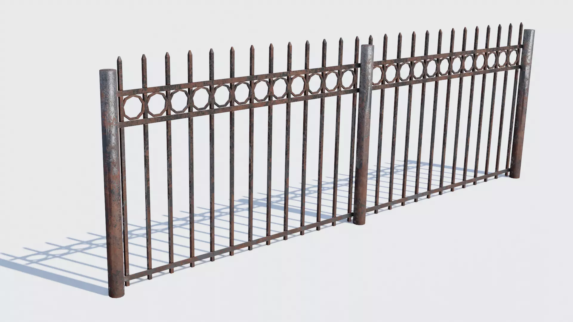 Old Rusty Fence, Game-ready PBR-Model.Post-apocalyptic exterior model.Texture maps 2048 x 2048:-baseColor,-height,-metallic,-normal,-occlusion,
