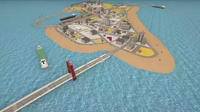 A complete low poly city environment designed for games, simulations, and mobile/PC projects. This pack includes an airport, dockyard/seaport, burger café, parking area, sea bridge, residential blocks, props, and modular buildings. Fully optimized and game-ready with clean geometry and lightweight textures.