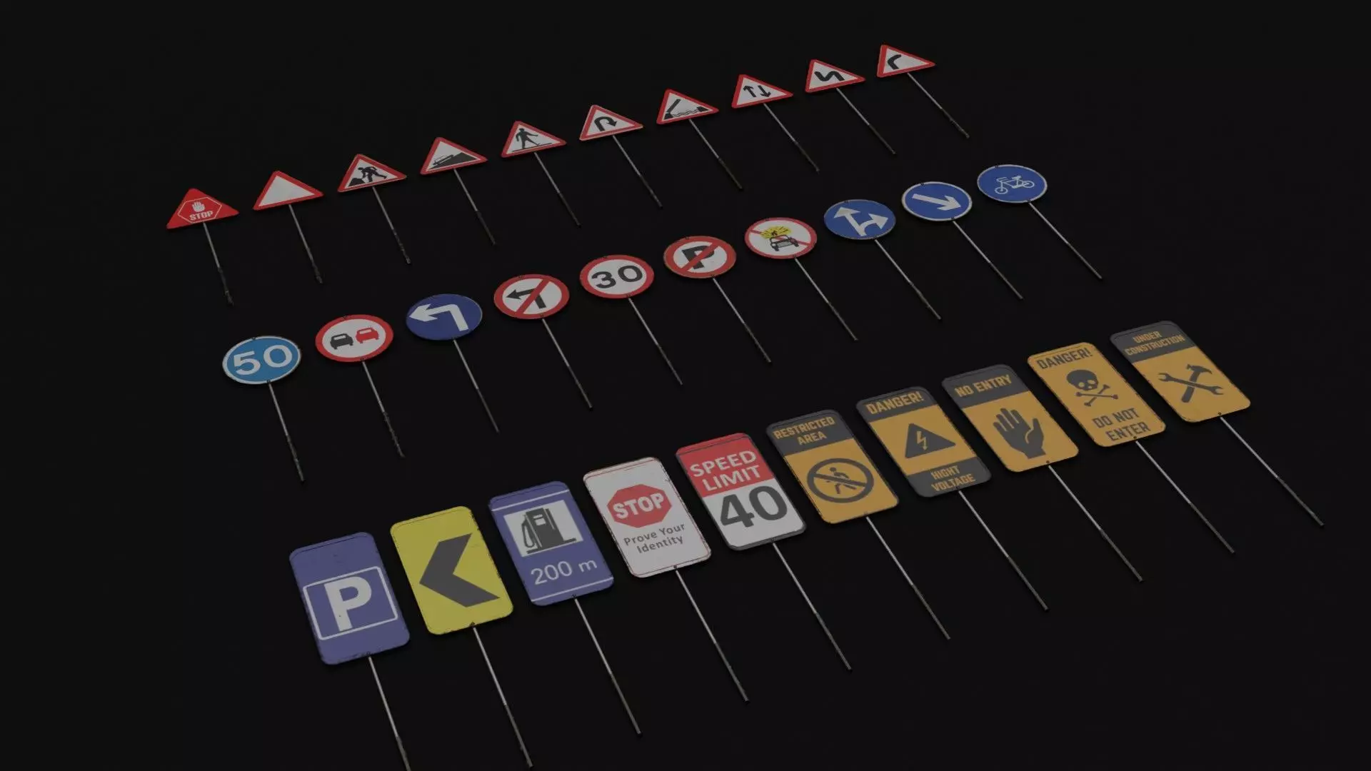 High-quality 3D modelsAccurately modeled traffic sign board bannersVariety of signs includedIdeal for traffic simulations, urban planning visualizations, and more