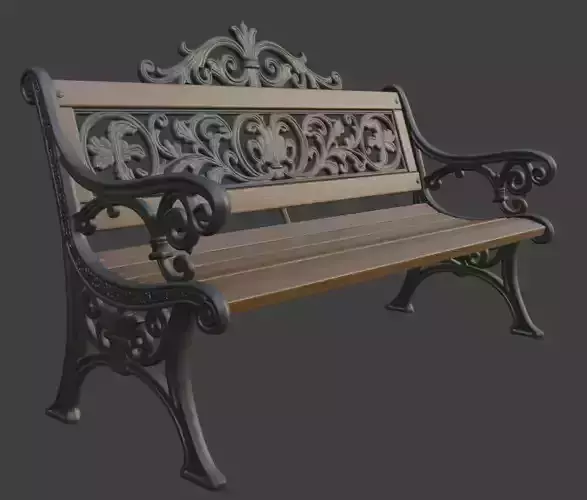 Realistic cast iron frame with ornate decorationsTextured wooden planks for authentic lookLow-poly friendly for real-time applicationsReady for subdivision if neededSuitable for close-up renders and distant views