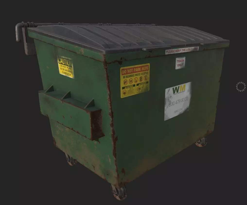 PBR Dumpster 3d model rendered in Marmoset as shown in previews. Provided in 3 different color variations.