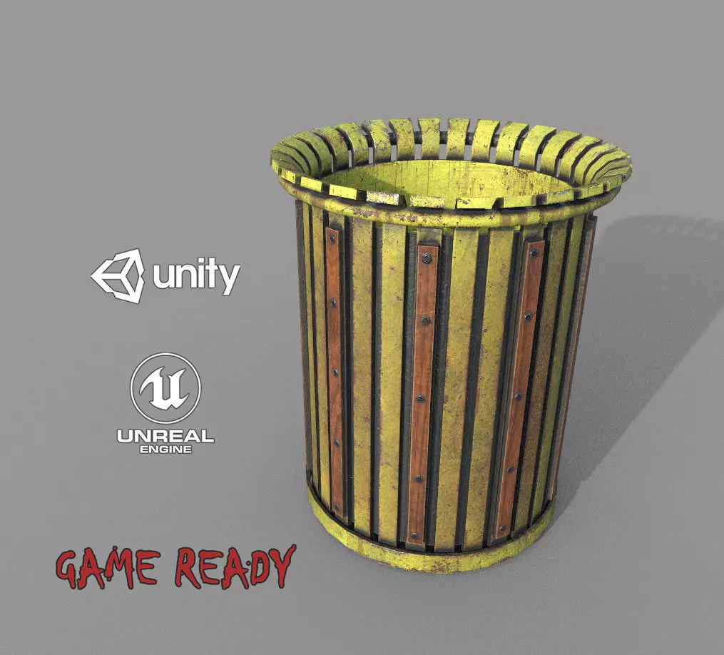 PBR Yellow Metal Trashbin Low-poly 3D model