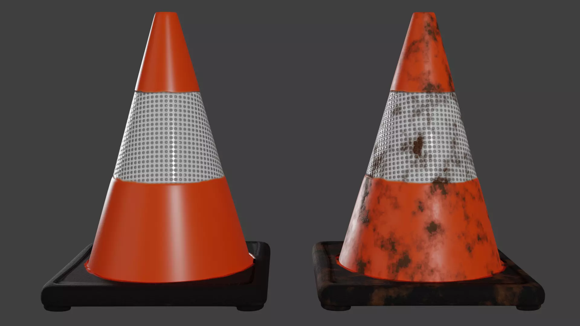 1. The 2 Traffic cone 3D models come in 3 different file formats. The first, FBX, comes with textures already applied and ready to go. The OBJ file format comes with textures already applied, but it requires changing the color space of the roughness and normal texture to non-color. The alembic file format (ABC) will require textures to be apllied manually, but these are named intuitevly for ease of use.