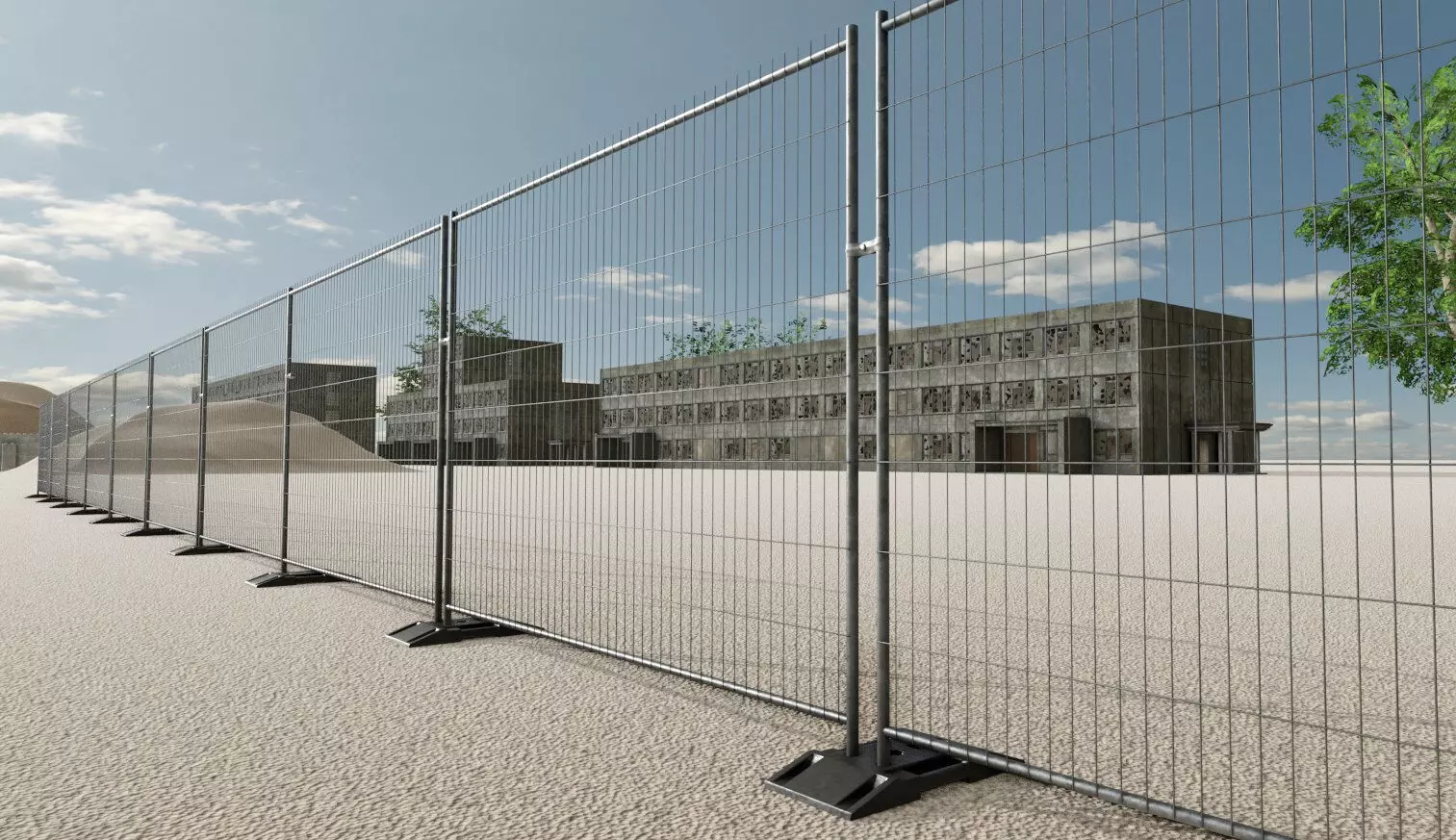 Hier ist ein Array-Modifikator-basierter Bauzaun mit Kunststoffsockeln.