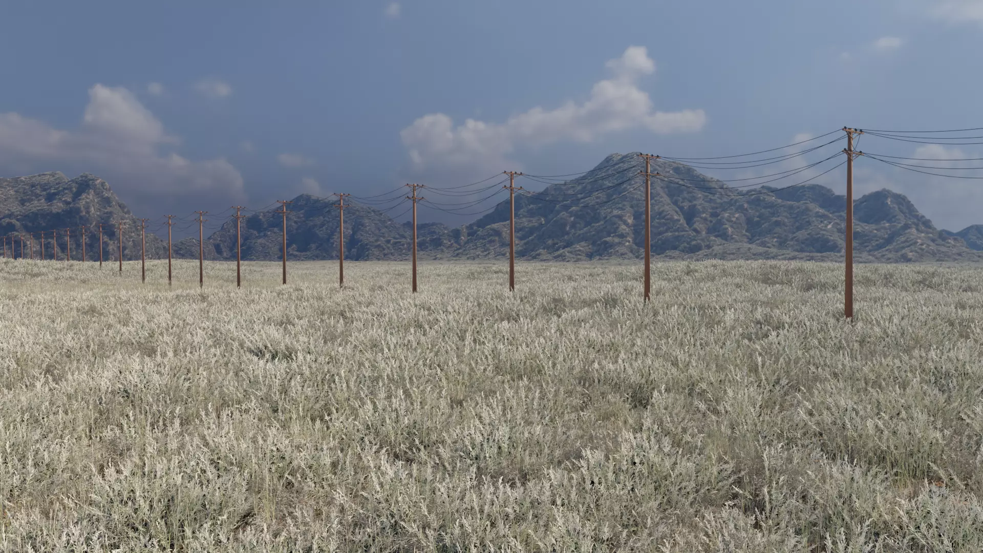 Modular Power Lines, very detailed.These model is more likely to be used in village scenes as it is made of wood. The model includes only the power lines and not the scene. The textures are included as well as textures are attached in the zip file provided.