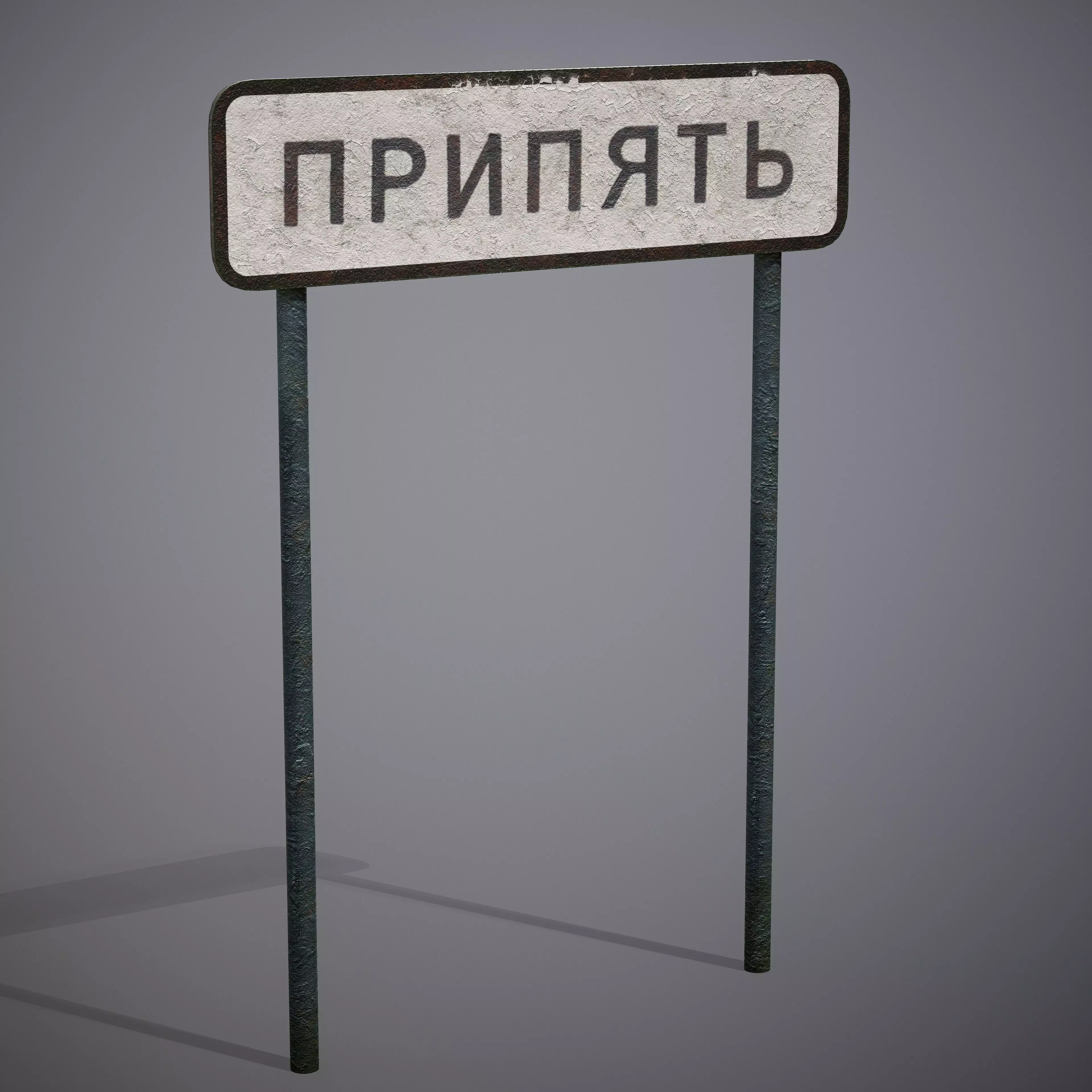 The metal sign Pripyat is a copy of the road sign with the town`s name in the Chornobyl zone.