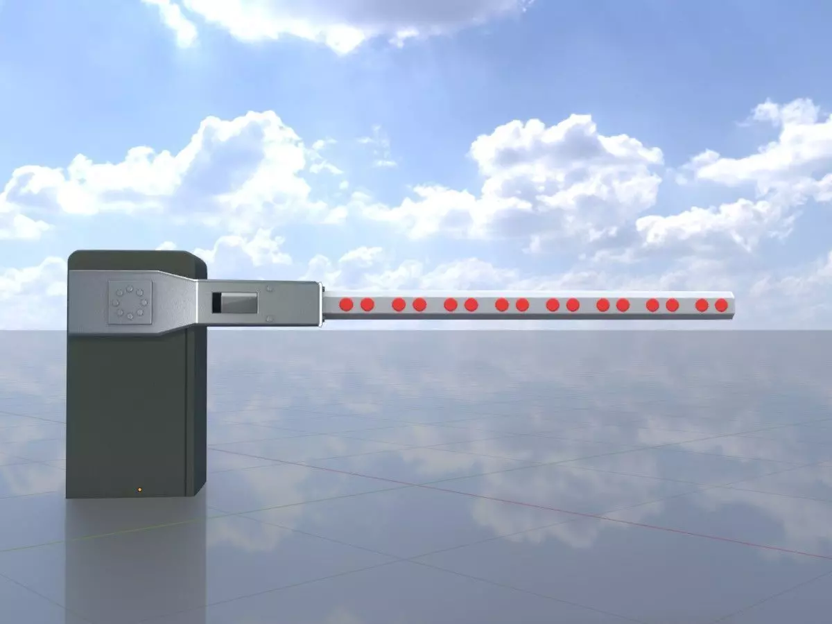 • Hier sehen Sie ein 3D-Modell einer geschlossenen Bahnschranke.