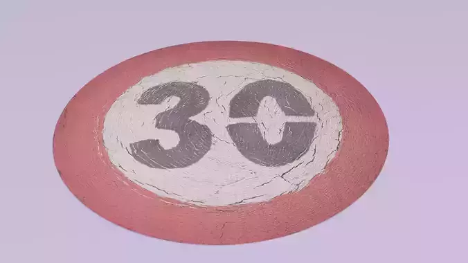 Road sign 30 km per hour high-poly 3D model