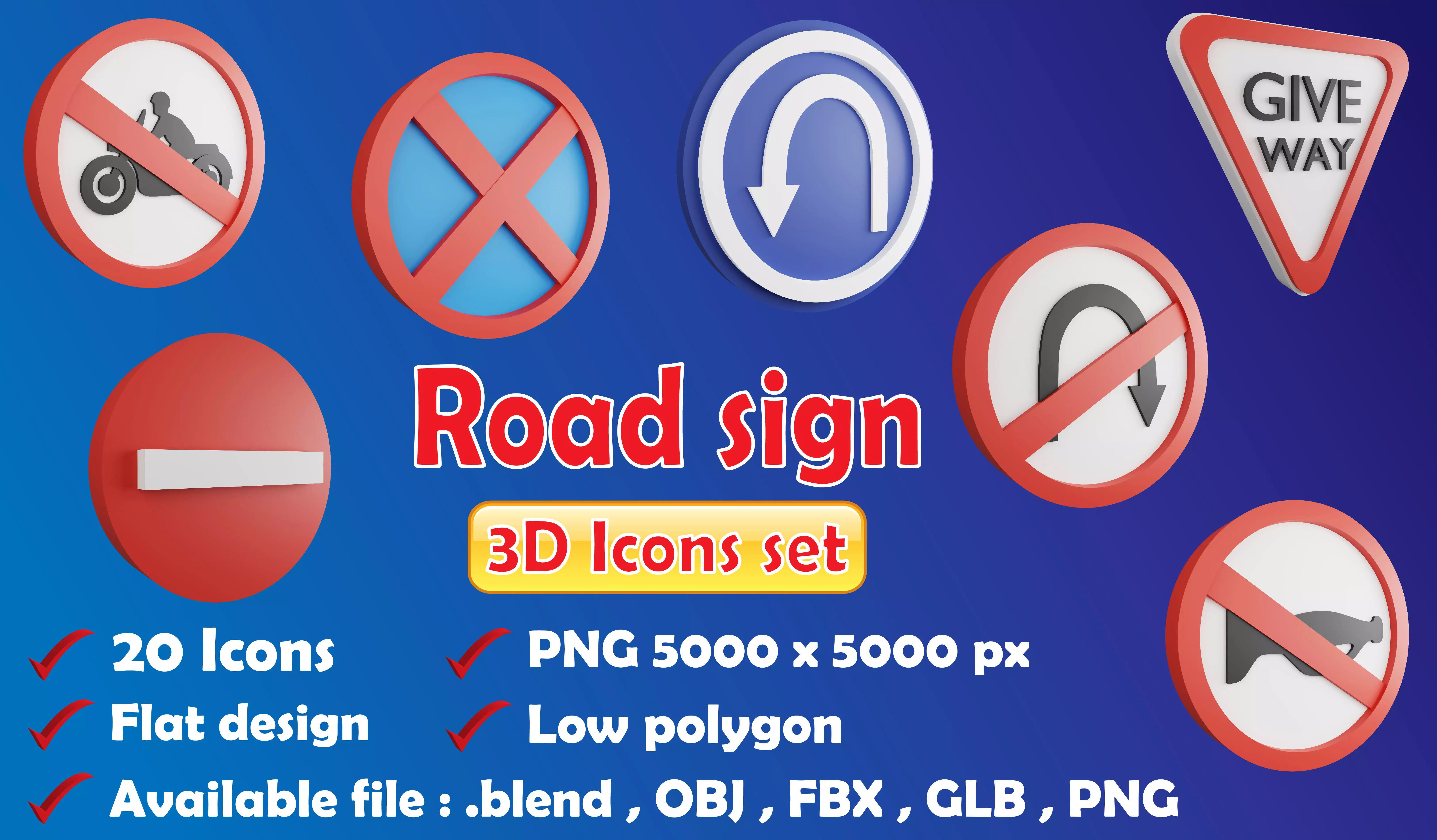 This icon set features is element about sign on the road and in the city. Road sign 3D icon set can be used directly for prop in road scene or city scene , or use for make advertising about traffic signal on the road and others.