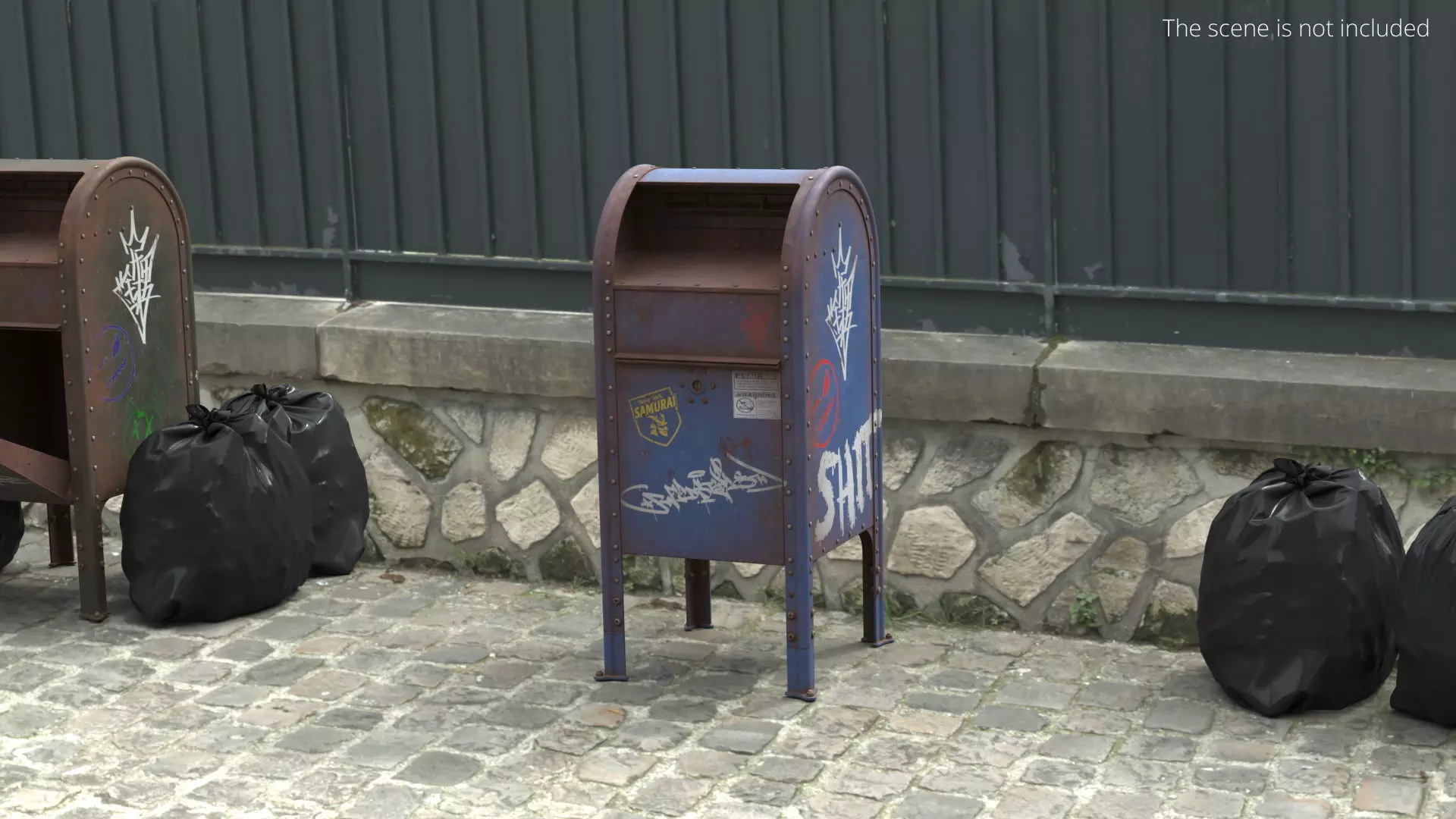This model captures the essence of a traditional blue mailbox, complete with realistic graffiti and weathered textures. The mailbox features a drop-off slot and a functional door for collecting mail, providing an authentic and detailed representation of its real-world counterpart.