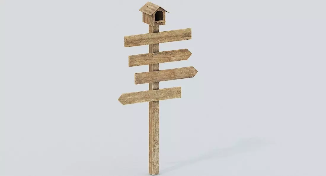Signpost4 wooden directional sign with birdhouse Low-poly 3D model