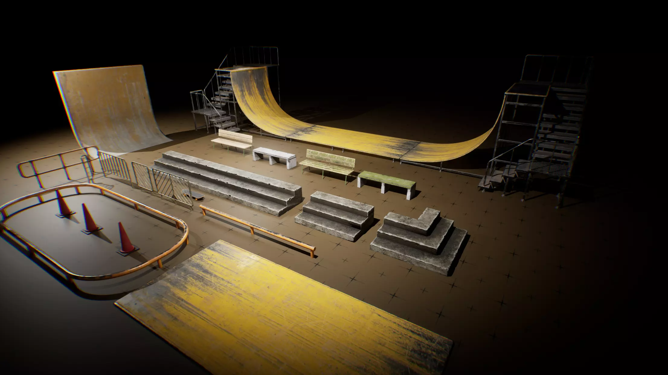 A modular skate park props collection designed for real-time applications, perfect for building realistic skate park environments in games, visualizations, or VR projects. All assets are fully compatible with Unreal Engine 5.4, using standard materials and collision setups.Package Includes: