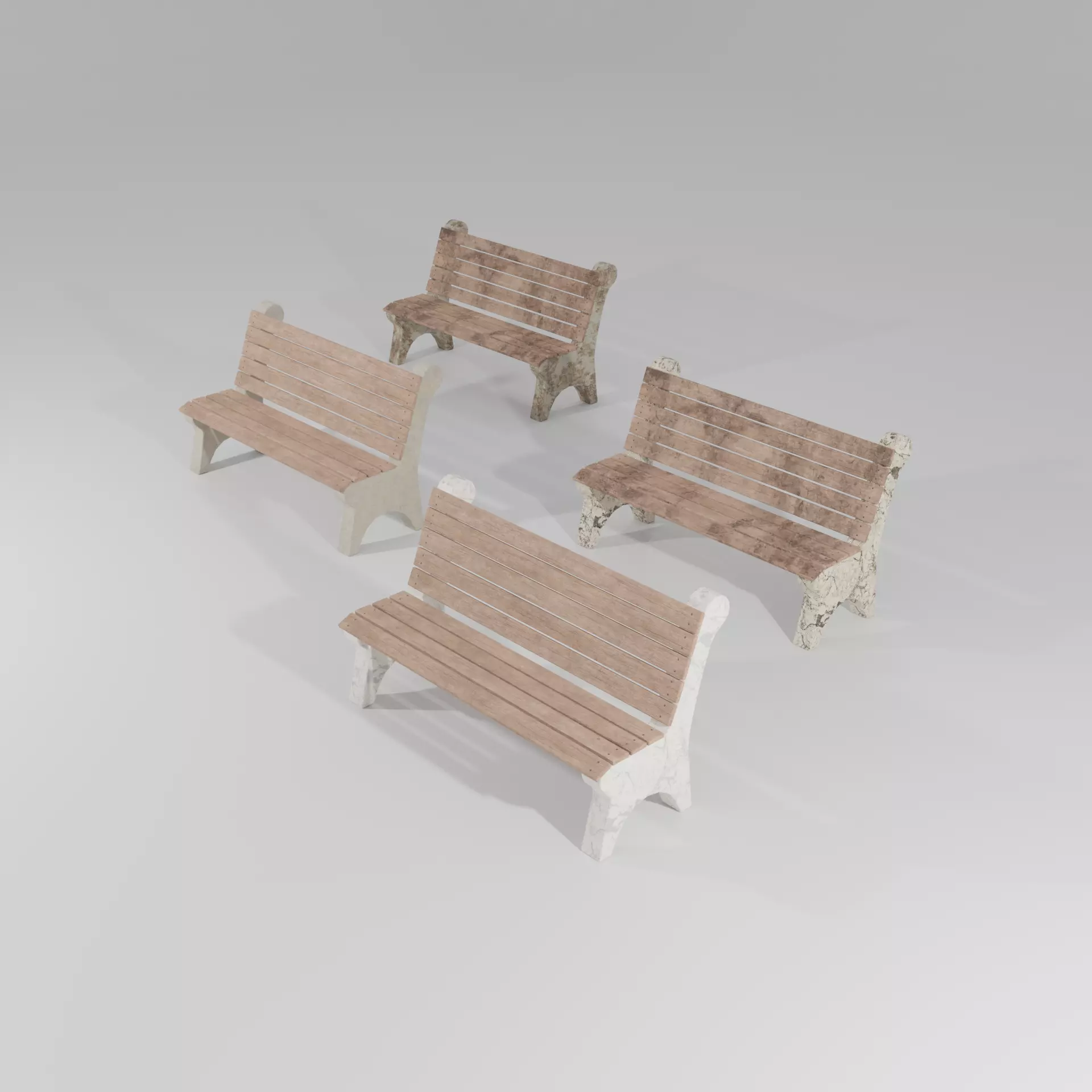 Street bench model. Consists of 1580 vertices, 1594 polygons. Model has dimensions 1.5mx0.68mx0,868m. Texture resolution 4096x4096. If you have problems with textures or materials, you can add them yourself. It is provided with this file.I have included some other file formats (fbx, obj). This model have a polygon mesh and uv maps. The model may contain a small number of triangular and N-gon polygons. The archive contains 4 sets of texture maps(bench with concrete base, old bench with concrete base, bench with marble base and old bench with marble base).
