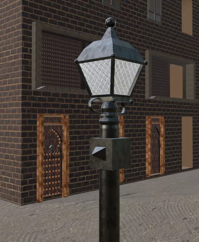 A beautifully crafted 3D model of an ** street lantern** commonly found in traditional Middle Eastern and Arabic alleyways. This detailed lamp features a wrought iron structure, classic glass panels, and elegant hanging design – perfect for authentic outdoor environments or old city scenes.