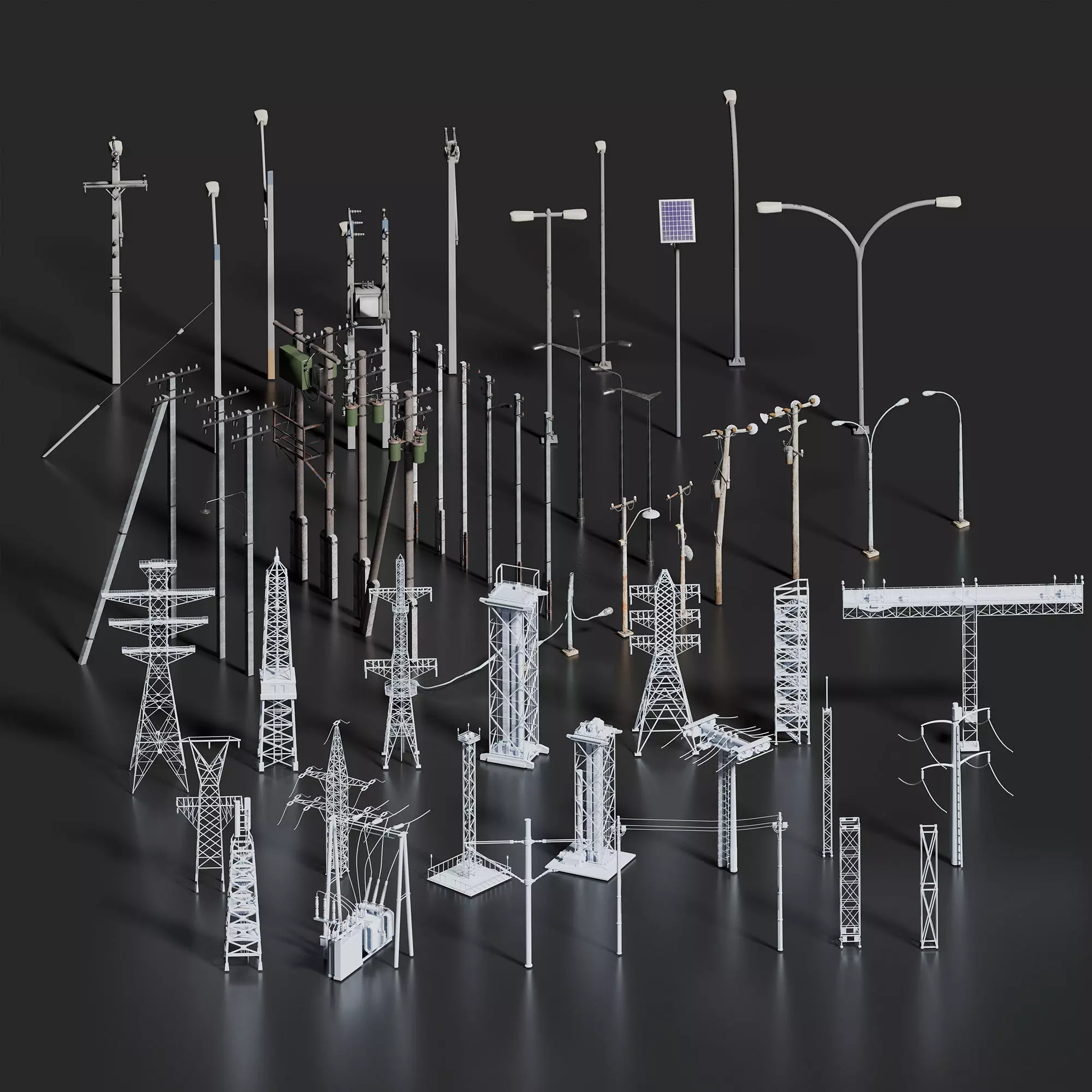 This set contains a wide variety of power distribution and lighting assets. Whether you are creating a rural roadside, a high-voltage industrial zone, or a modern city street, these models provide the authentic scale and detail needed for professional environment art.