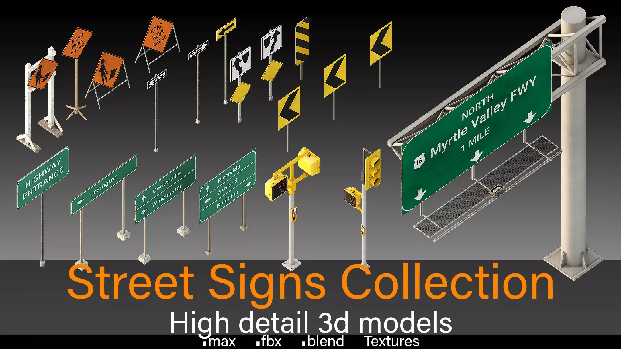 70+ unique, textured 3D sign models