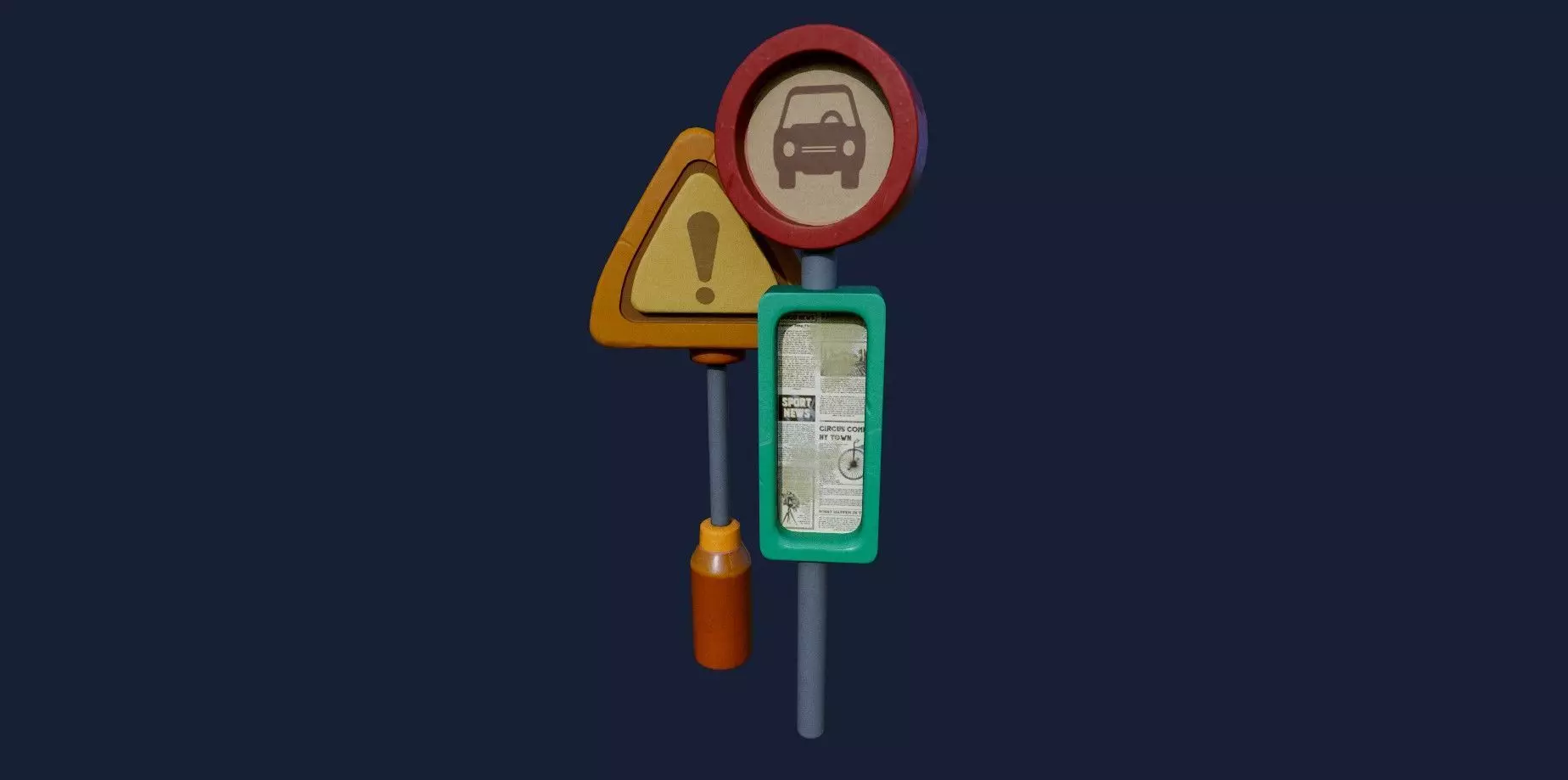 Stylized low-poly road sign game-ready asset