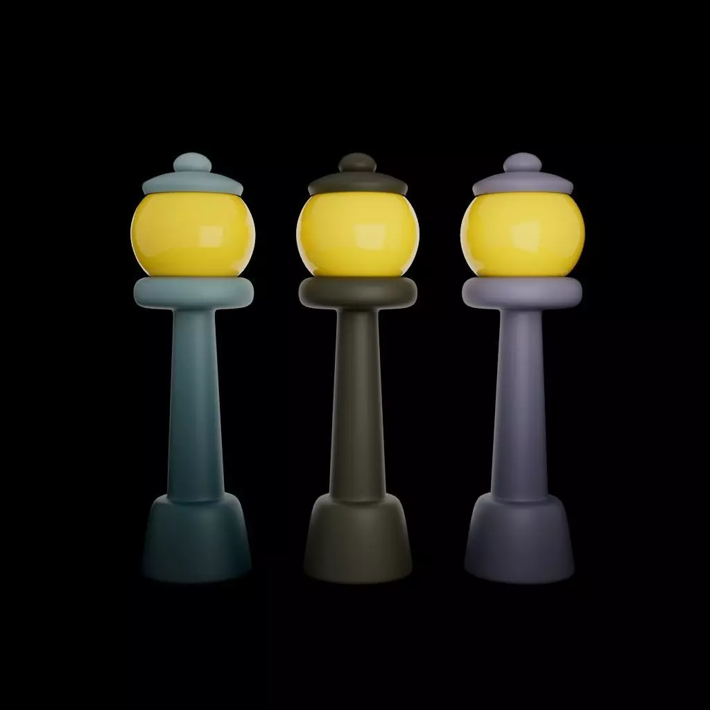 The pack includes multiple color variations, a clean clay version, and a fully visible wireframe for maximum transparency. All lamps share the same proportions and style, making them perfect for modular environments, cozy stylized towns, fantasy streets, or casual mobile games.