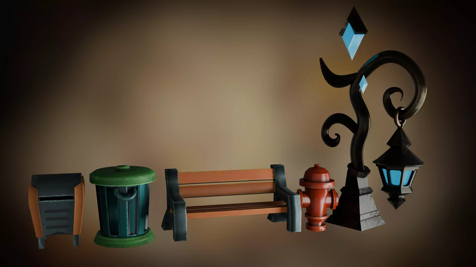 Bring charm and character to your environments with this handcrafted stylized prop collection. Designed with a chunky, exaggerated aesthetic and vibrant painted textures, this pack includes the core street scene elements every lively environment needs: