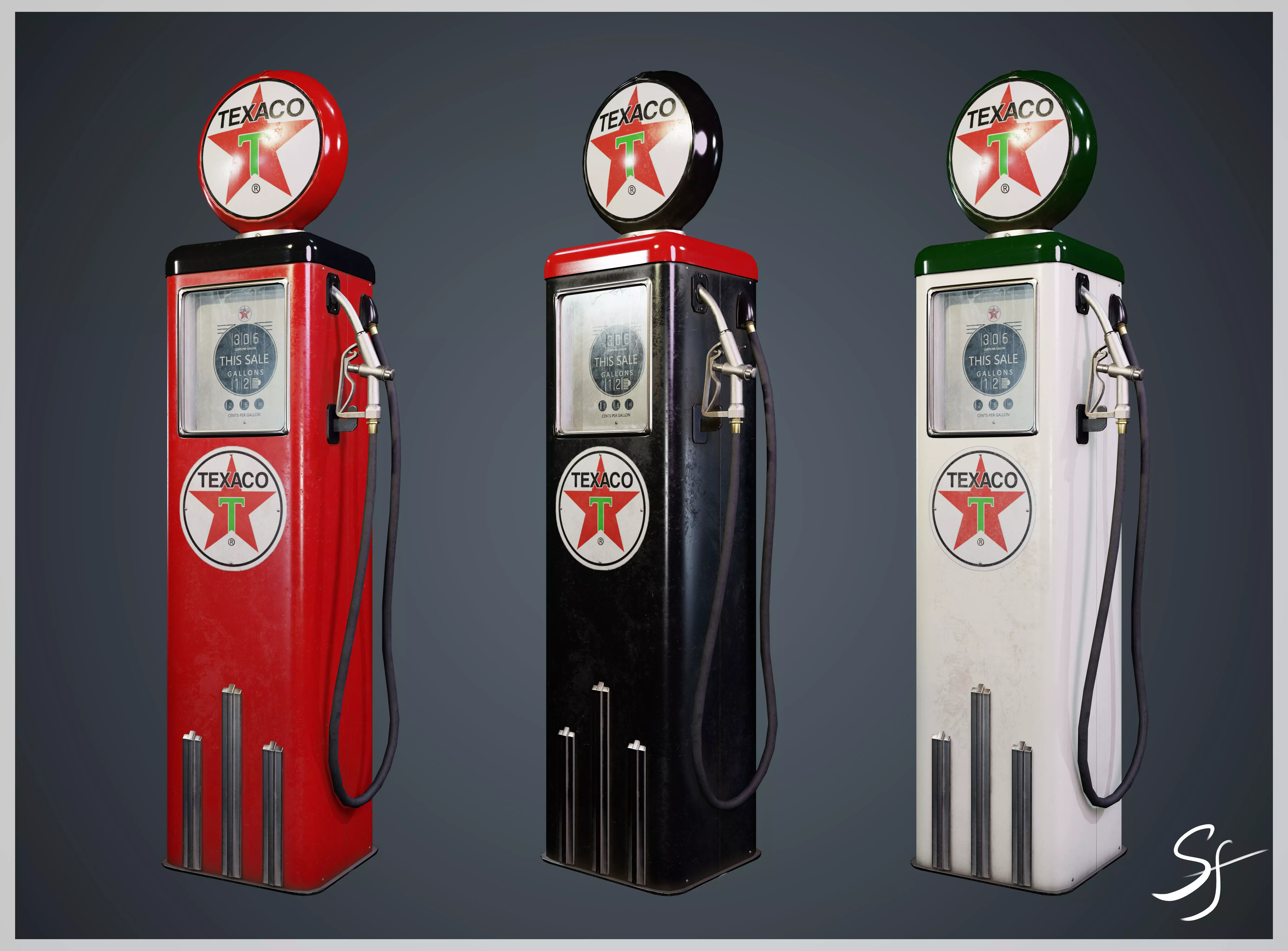 Vintage gas pump that I've created for selling it on the marketplace.This is a game ready asset having,Texture size: 4096x4096Tricount: 8449 TrisHigh Poly and Low Poly created in Blender.Baked and textured in Substance Painter.
