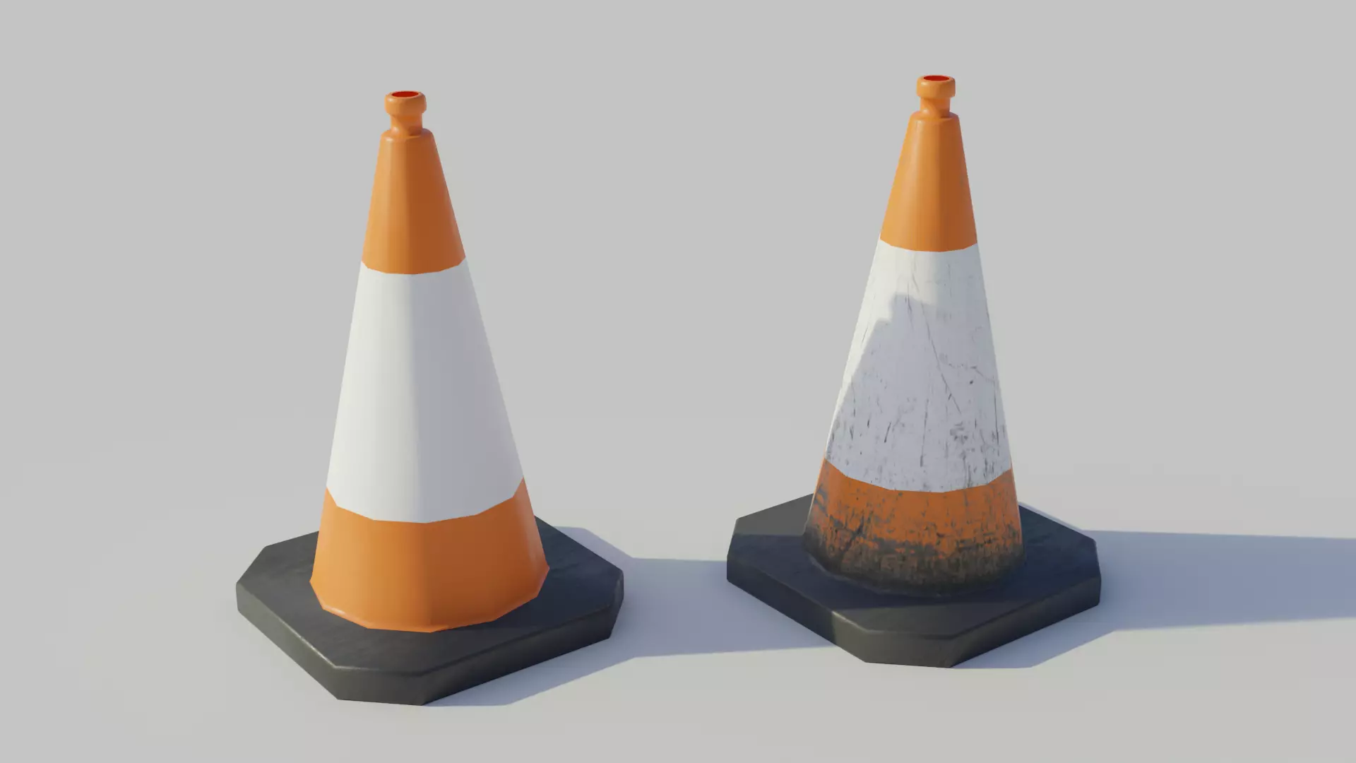 A low poly traffic cone with 252 faces. The traffic cone comes with 4K pbr textures in PNG format (diffuse, roughness and normal maps) with 2 varietys of diffuse maps, one clean and one dirty/weathered.