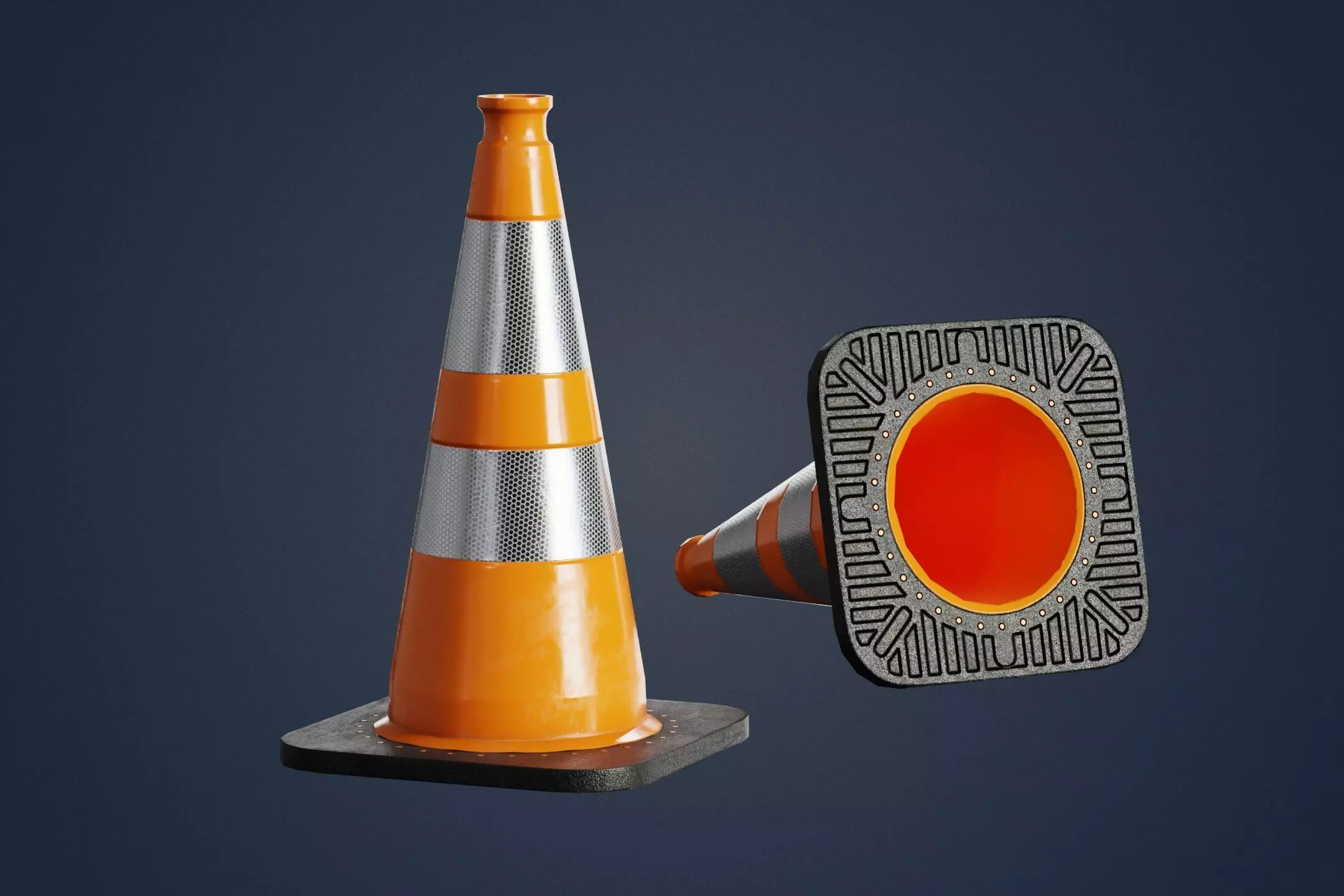 Orange traffic cone with reflector PBR Game-Ready Low-poly 3D model